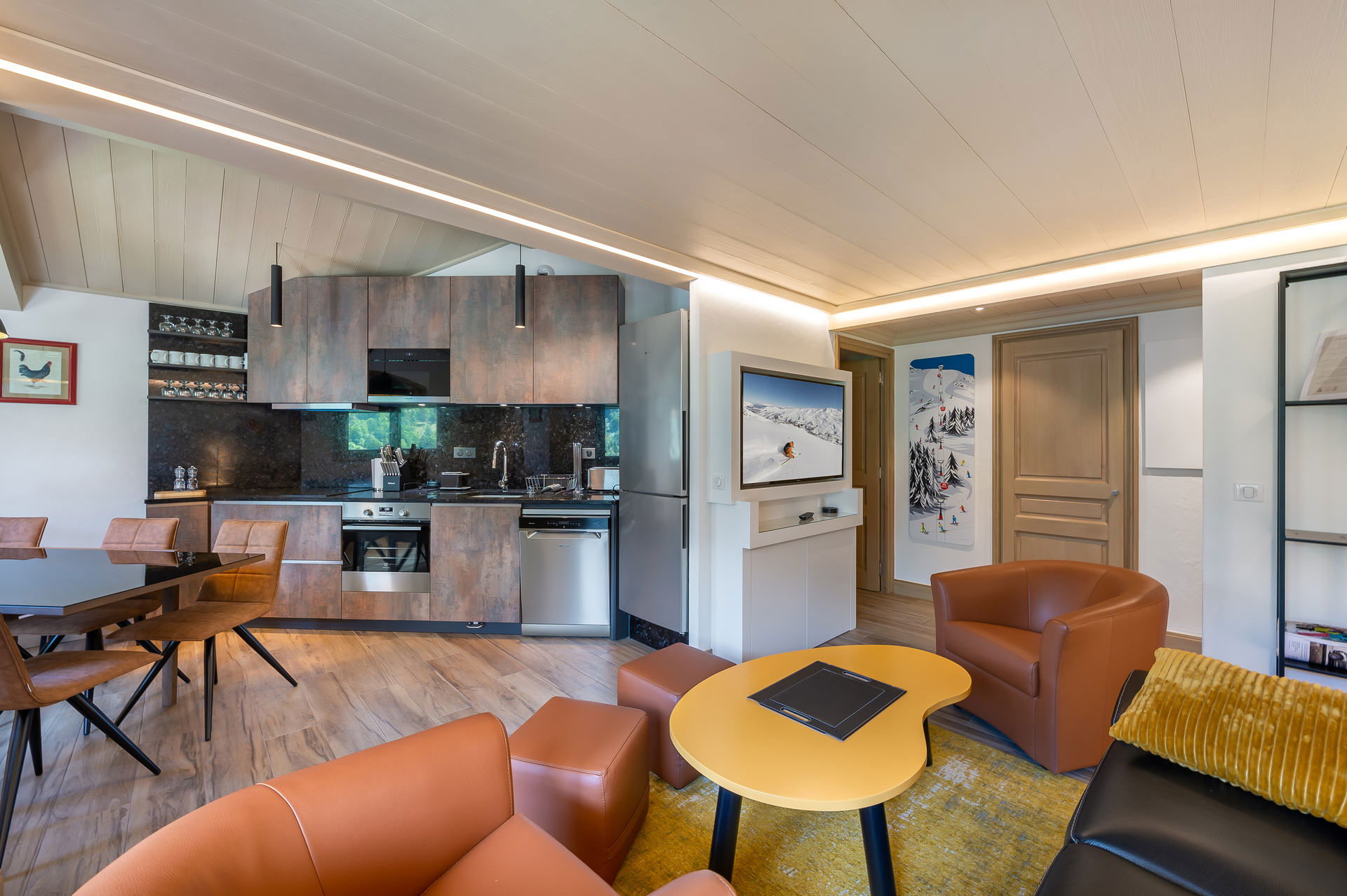 - Fully equipped open space kitchen: fridge, oven, microwave, dishwasher, induction hob, kettle, Nespresso, toaster, raclette machine with grill stone, fondue appliance