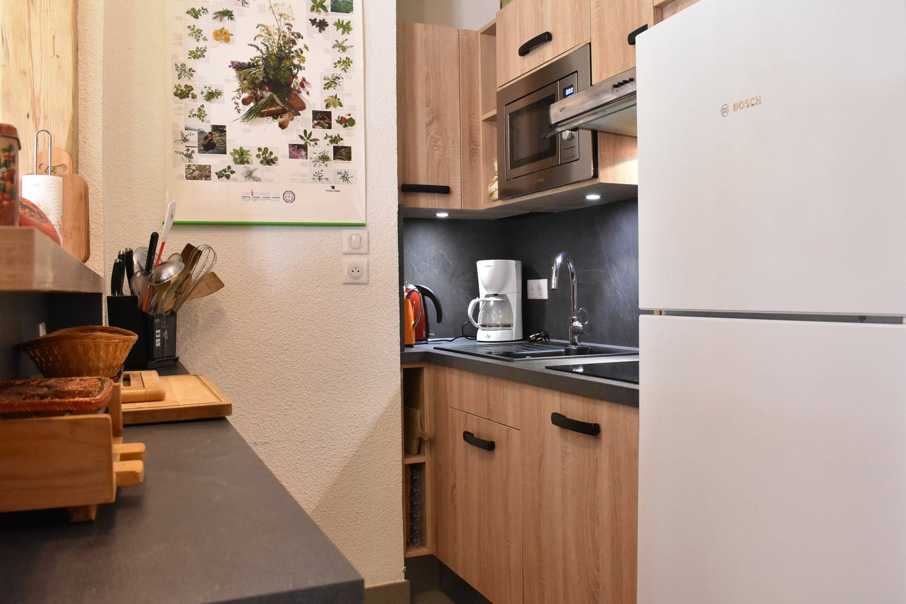 The advantages of this apartment in the snow: This rental is located close to the slopes. The bus stop is located 100m from the apartment, so you can easily move around the resort thanks to the free shuttles. An East balcony and South Loggia will allow you to relax and offer you a beautiful view of the forests.