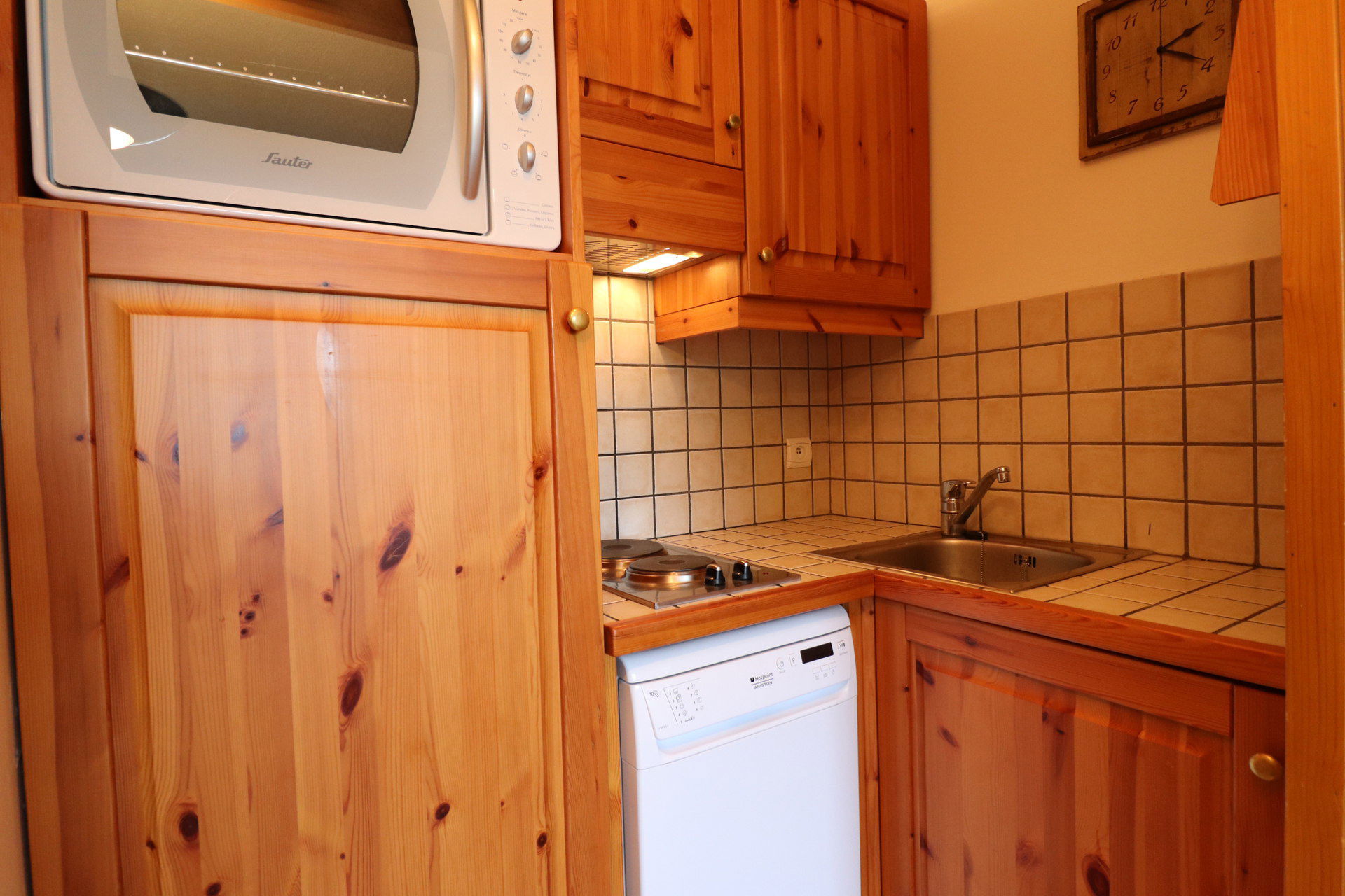 Kitchen corner : fridge, dishwasher, 2 hot plates, oven, micro-waves, hood, 1 SENSEO coffee machine, filter coffee machine, toaster, electric kettle.
