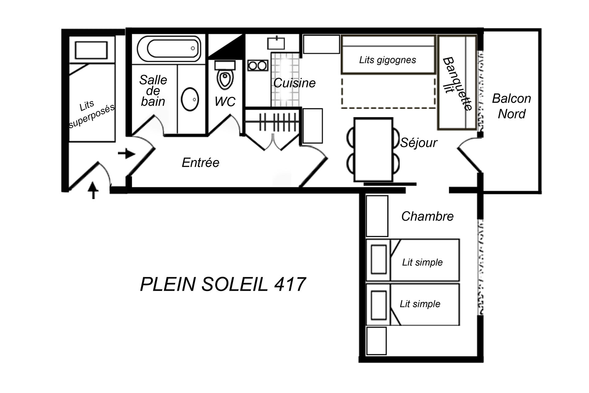 Small cabin: extra bunk beds (90x190, check photo)