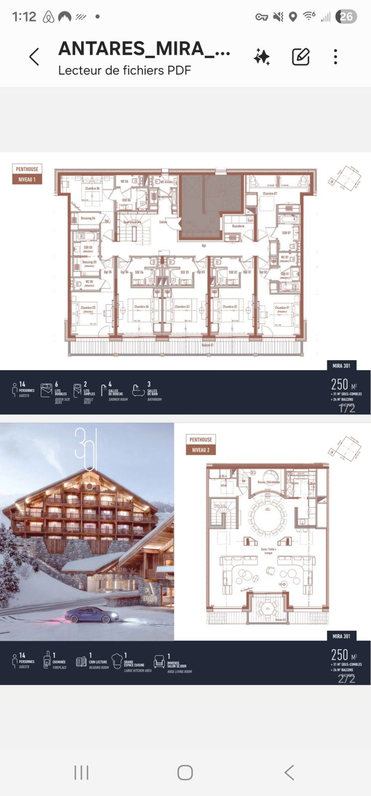 Located on the ski pistes, in the Rond Point, Antares residence is probably the most beautiful location in Meribel. Ski-in and ski-out: you've direct access to the pistes of the 3 Vallées - the largest ski area in the world. This spacious apartment of 250 meters square can host up to 15 people in 7 bedrooms. It offers breathtaking mountain views. Only the finest materials were used to decorate this duplex penthouse to create a cozy, elegant and intimate atmosphere. After a day on the slopes, treat yourself to some moments of pure relaxation in the wellness area: indoor pool (25m), spa (hammam & sauna), bar and kid and teen’s recreation room. A deluxe hotel service is available upon request: breakfast, half board, room service, private chef, concierge service… Luxury, comfort and intimacy are the cornerstones of your stay in this exceptional apartment-chalet. this flat can comfortably accommodate up to 15 guests and for larger groups, other apartments are available for rent in the same building.