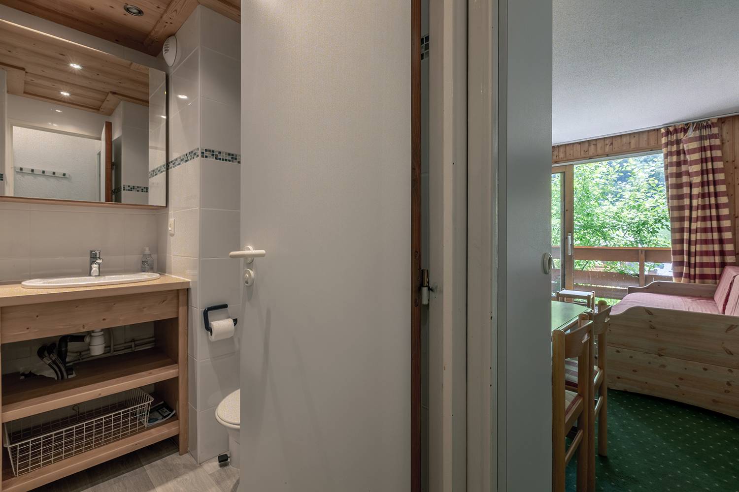 The living room with terrasse has two sofa beds (80x190), television. Sleeping area with a set of bunk beds (80x190). Equipped with electric hob, oven, dishwasher, toaster, kettle, coffee maker and refrigerator. Shower with toilet. Ski locker and a lift in the residence, one floor to walk. Non smoking apartment.