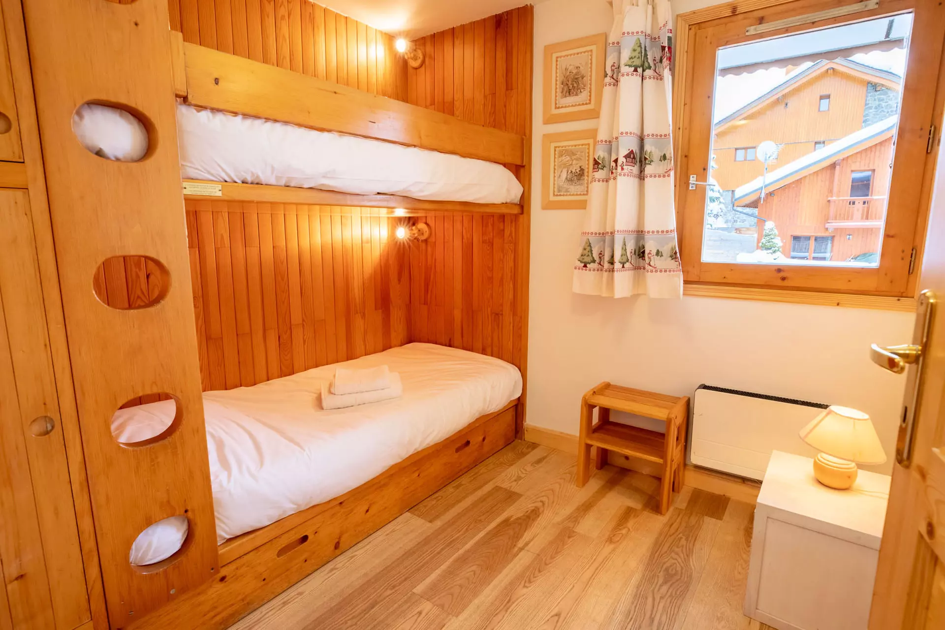 - 1 bedroom with two bunk beds,