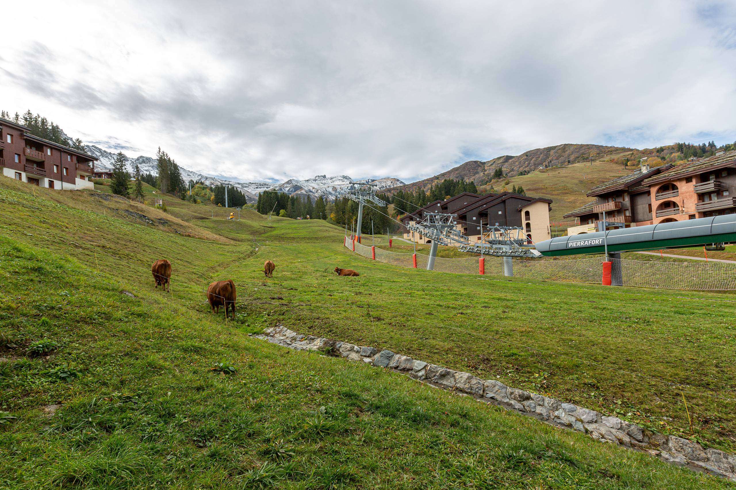 The ‘’Le Pierrafort‘’ residence offers ski-in/ski-out access and easy access to the shops in the Crève Coeur district. The Télébourg ski lift is less than 100 metres away. Many of the apartments have a view of the slopes. Pay parking is available at the foot of the residences.