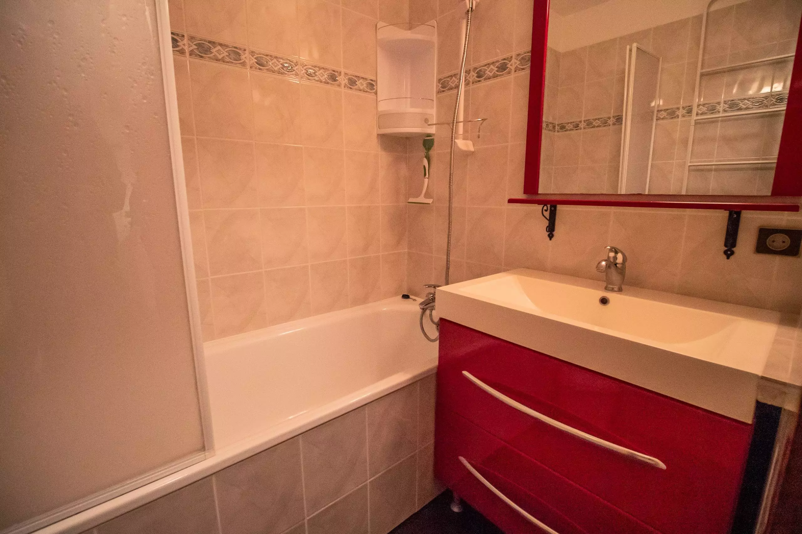 - Living room divisible by a movable partition equipped with a BZ sofa (2 people. 140x190cm), a sofa bed (1 person. 80x190cm) and a set of bunk beds (2 people. 80x190cm)
