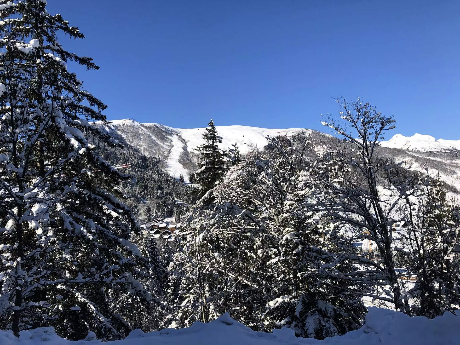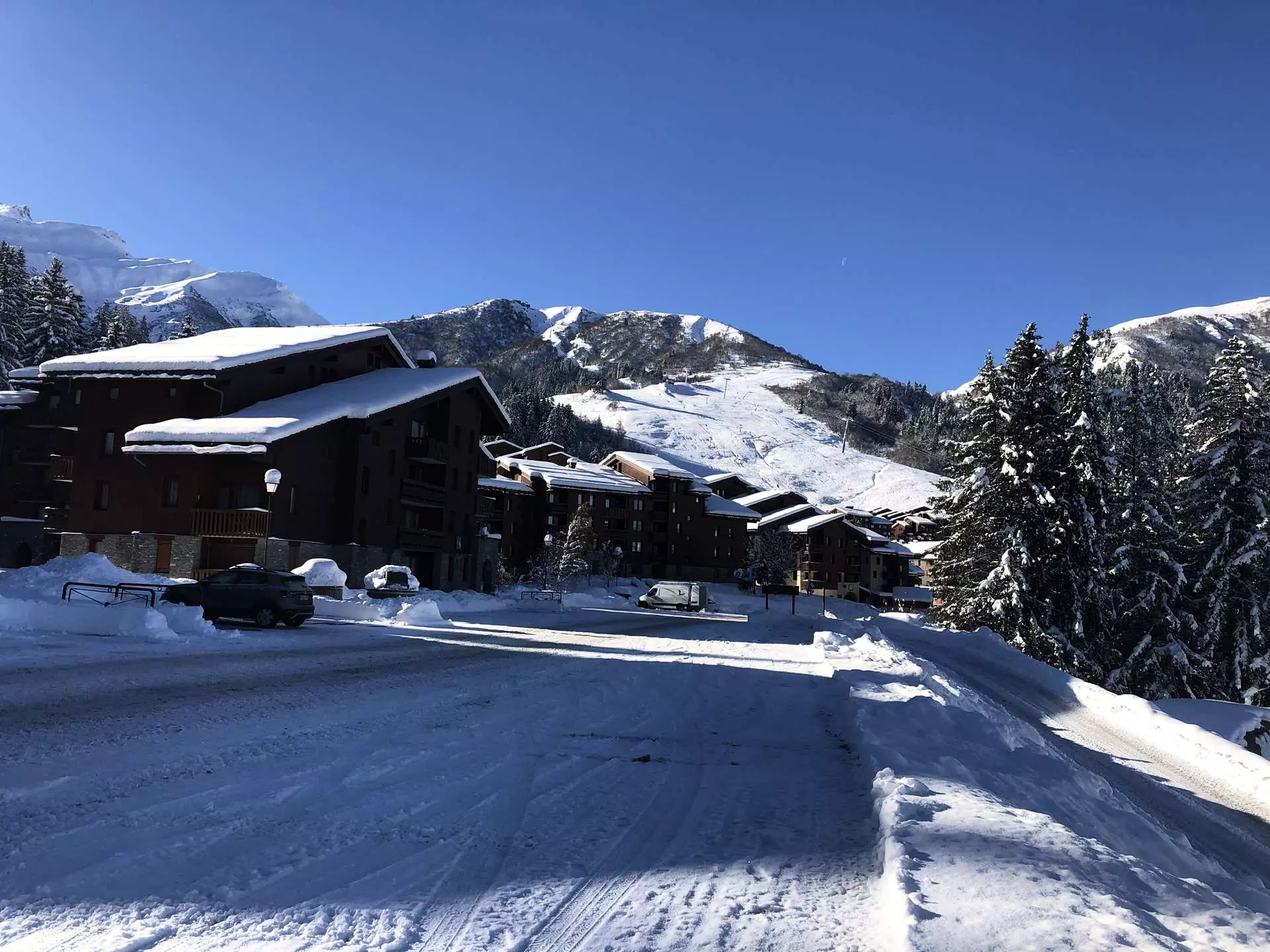It is 5 minutes from ESF lessons and the Piou Piou club, 5 minutes from shops, and it is ski-in/ski-out. It is in the immediate vicinity of the ski lockers and benefits from direct access to the parking lot via a pedestrian path.