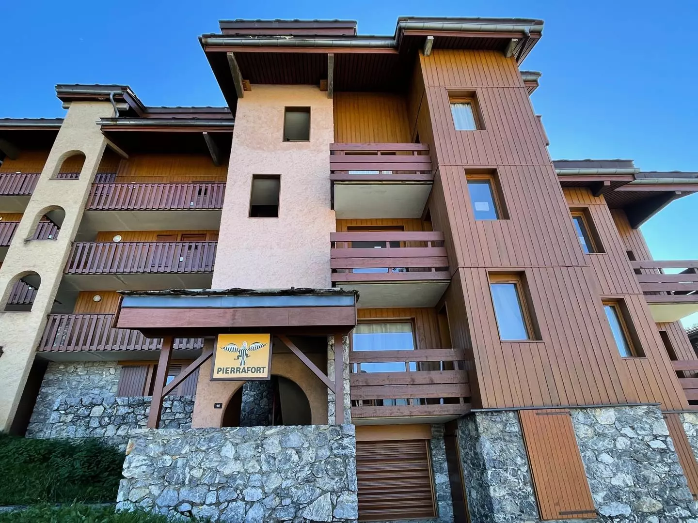 The "Le Pierrafort" residence offers ski-in/ski-out access and easy access to the shops in the Crève Coeur district. The Télébourg ski lift is less than 100 meters away. Many of the apartments offer views of the slopes. Paid parking is available at the foot of the residences.