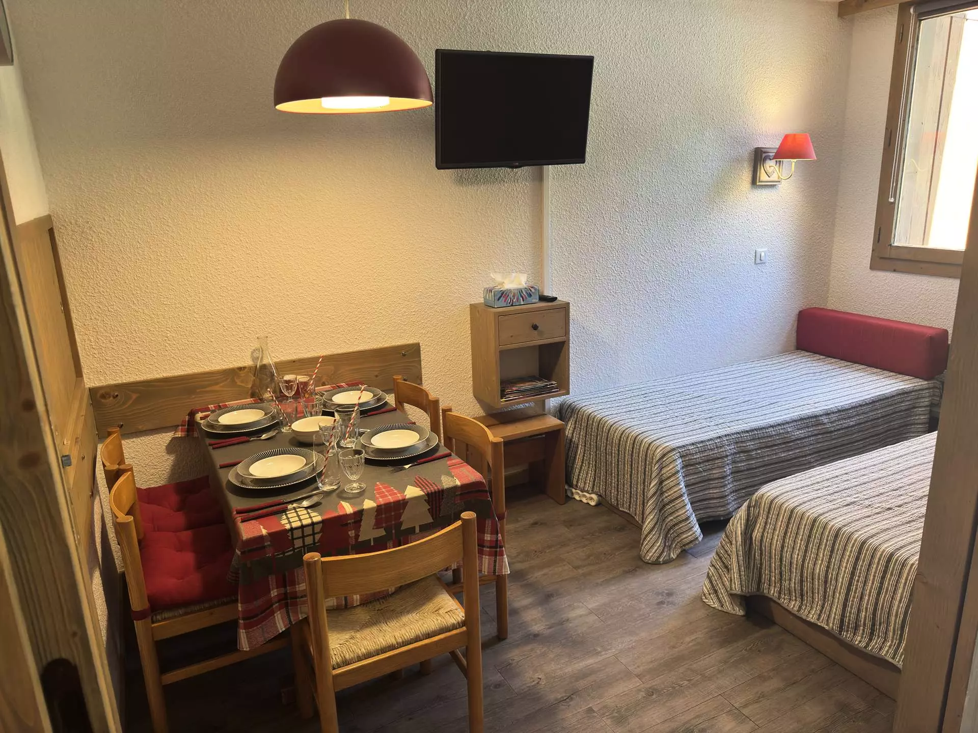 It is 5 minutes from the ESF lessons and the Piou Piou club, very close to the shops and is at the foot of the slopes, restaurants and the cable car.