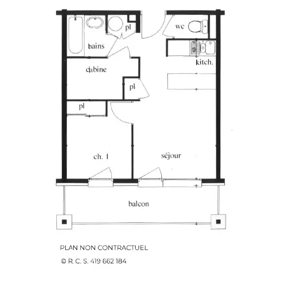Residence Les Côtes d'Or - Chalet Argentière, (n°202) 2 rooms cabin for 4 people, 35 m², on the 2nd floor balcony side, ground floor from the entrance of the chalet, by stairs, balcony facing South-West