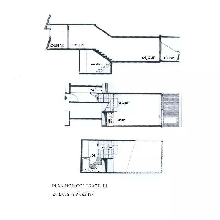 Residence Côte Brune (No. 214), duplex studio for 4 people, 25m², on the 4th floor by elevator, 1st floor by balcony, south-west facing balcony, view of La Croisette
