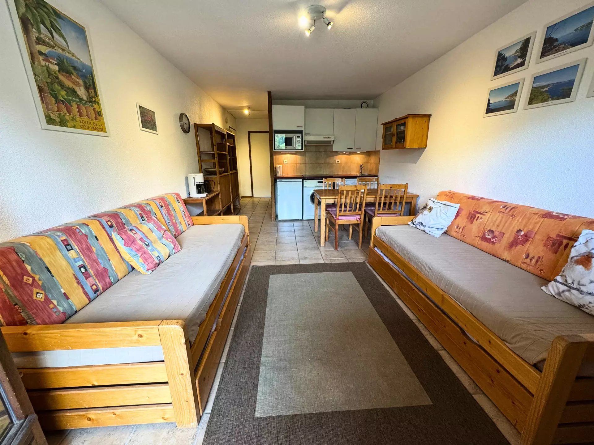 Living room: 1 pull-out bed (2x80cm), sofa, television, view of Le Cochet