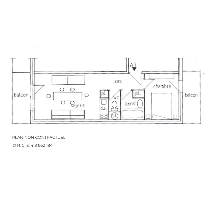 Residence Les Gentianes (N°A7), 2 rooms for 4 people 33m², on the 1st floor by stairs from the main entrance, balcony facing Southwest. At the foot of the slopes from the main entrance opposite the cable car