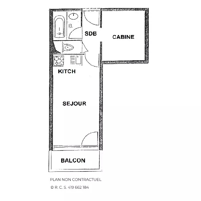 Residence Le Villaret (No. 704), studio cabin for 3 people 22m², on the 7th floor by elevator, west-facing balcony. Access via the upper entrance. Connected to the Croisette district by cable car (free) until 11 p.m.