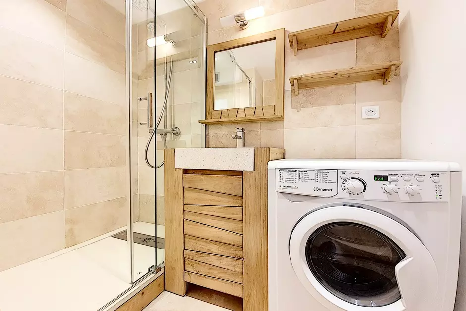 Shower room with shower and washing machine