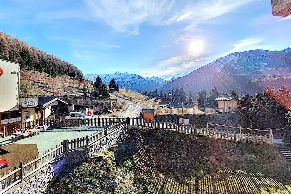 It has a south balcony (slope view) on the living room side and a north balcony on the bedroom side (resort view)