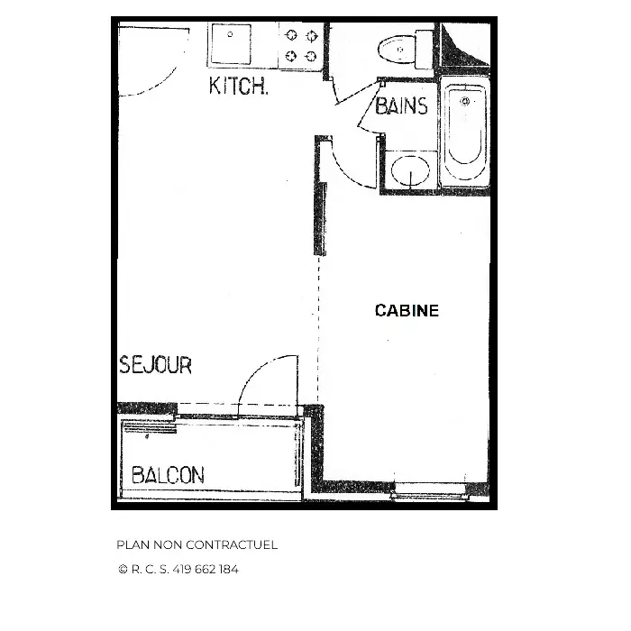 Residence Le Jettay entrance "B" Bruant (No. 56), studio for 4 people 24m², 1st floor by staircase, west-facing balcony, view of La Masse