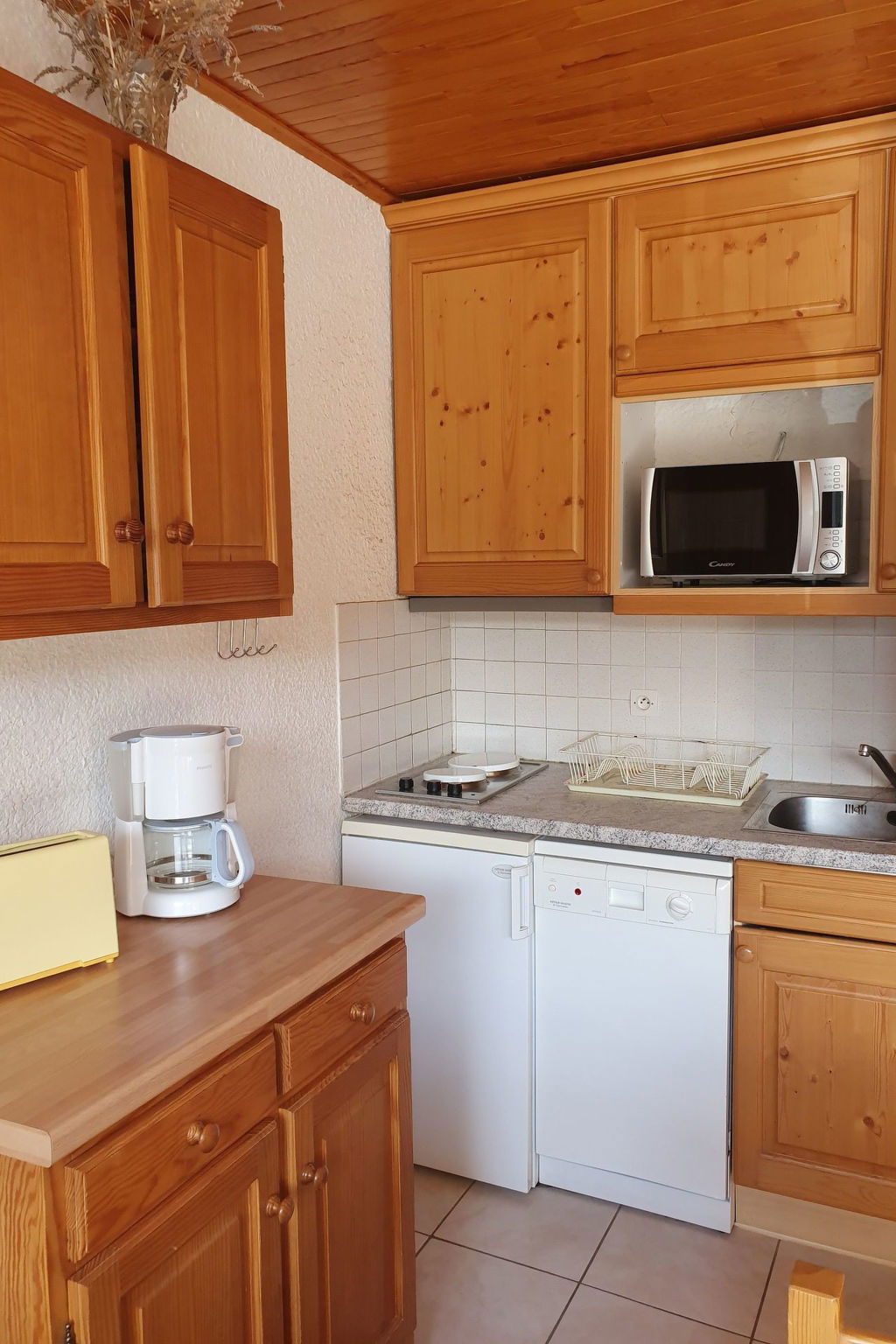 "Coolidge", 1-room studio 25 m2 on 1st floor. Object suitable for 4 adults. Living room with 1 sofabed and 1 x 2 bunk beds, 1 pull-out bed and TV. Kitchen (2 hot plates, dishwasher, kettle, microwave, electric coffee machine). Bath/WC. Balcony. View of the mountains. Please note: non-smokers only. 1 pet/ dog allowed. Smoke alarm. Offer by a commercial proprietor according to Art. 155, IV, CGI 38253003380HT
