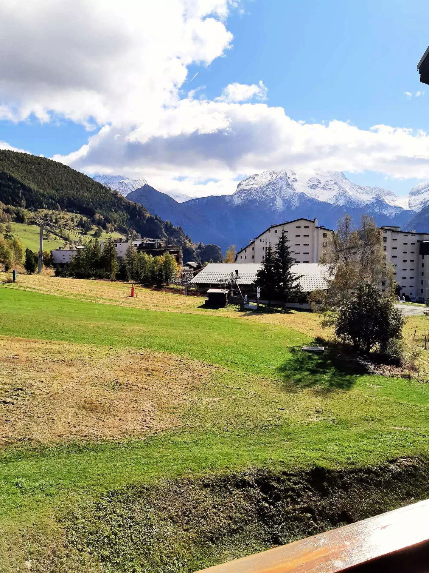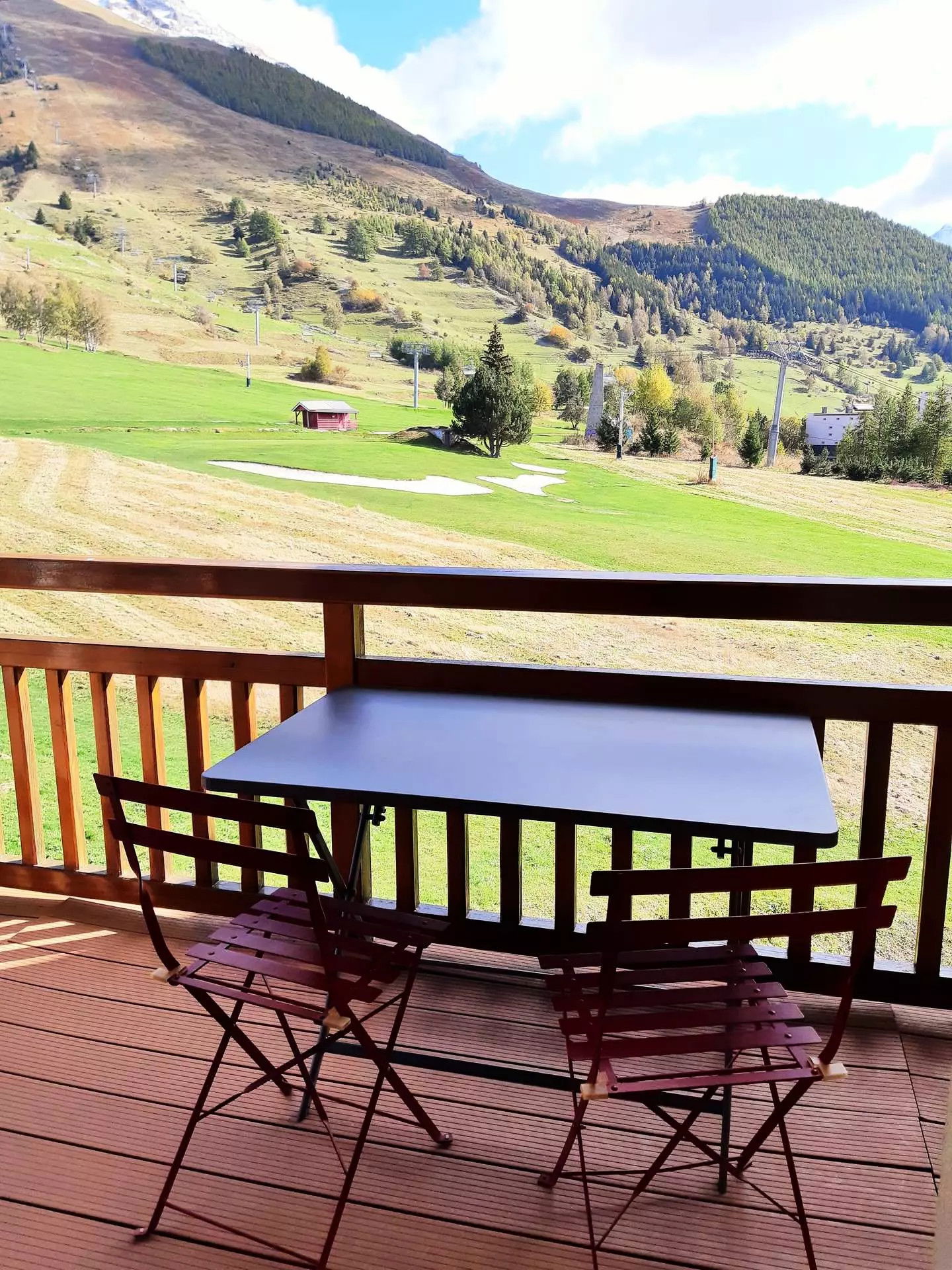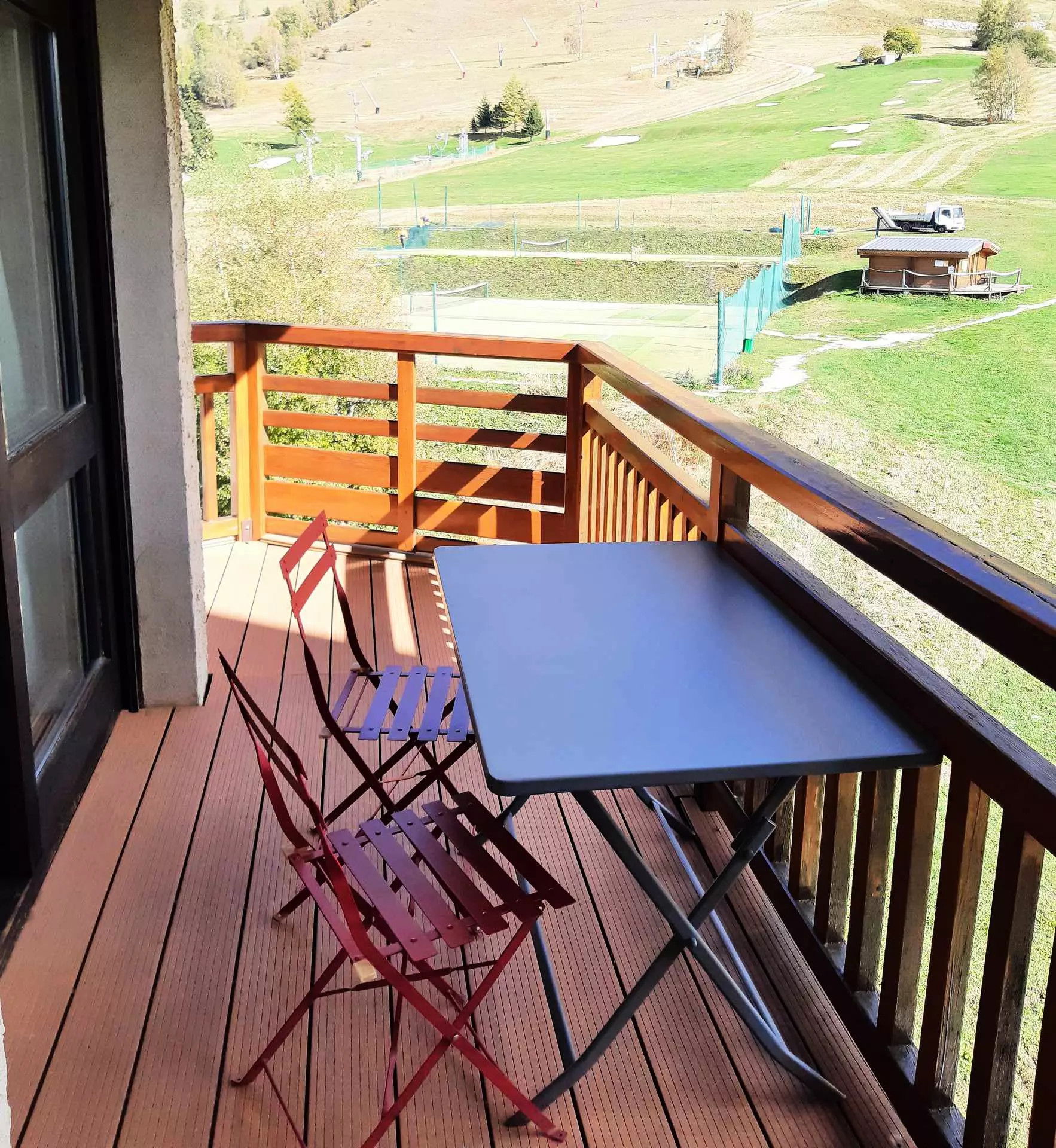 South-facing balcony with unobstructed views of the slopes and mountains.
