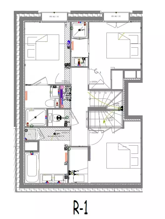 - 1 cabin-style dormitory space, equipped with a bunk bed (90x200) and 2 80x200 beds that can be converted into a double bed, TV