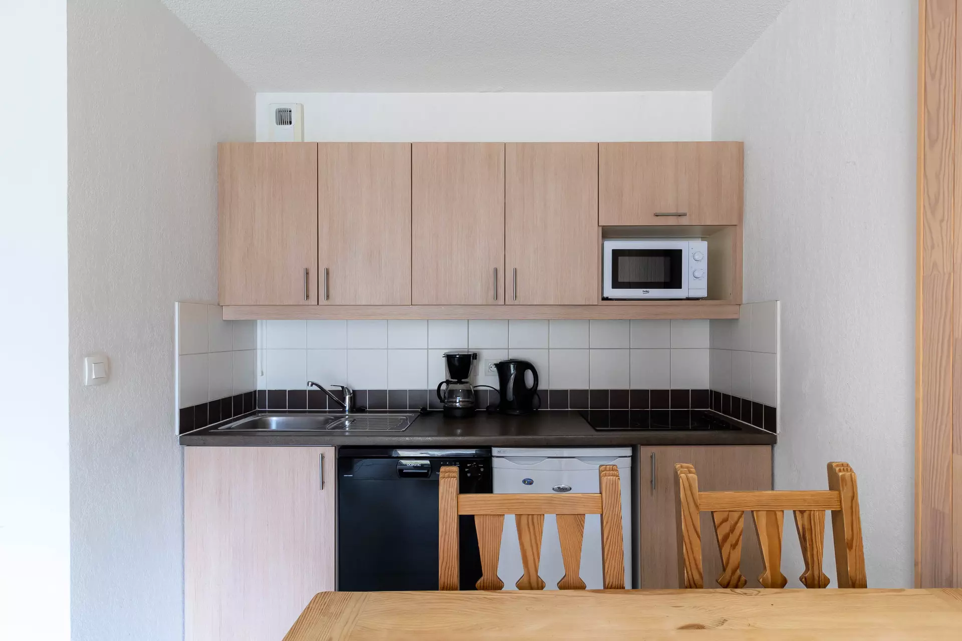 This 33m², west-facing, 2-room apartment is located slightly back from the central square of the Les Orres 1800 resort, making it ideal for a peaceful stay.