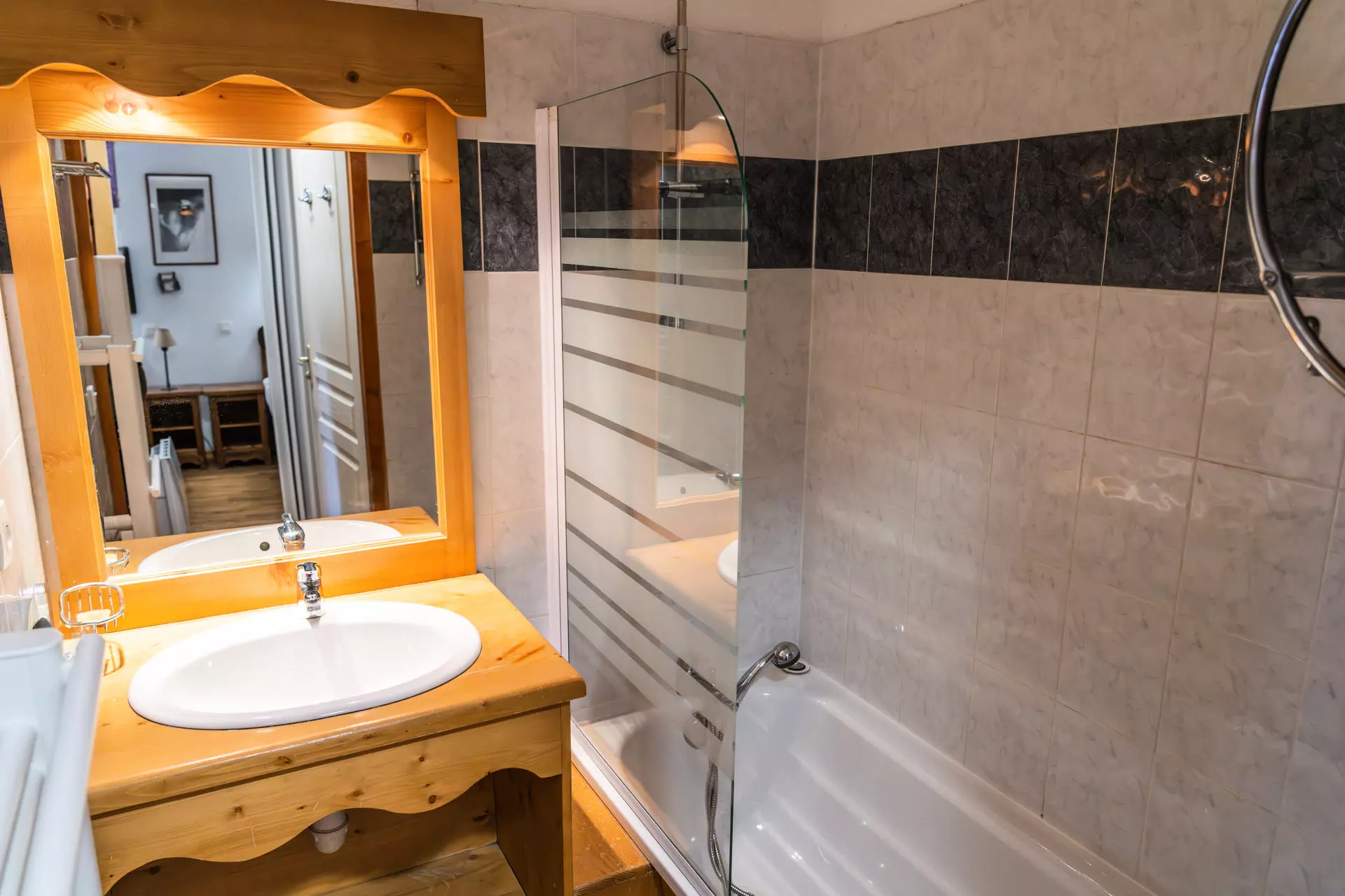 The bathroom has a bathtub, for a relaxing moment after your sporty days in the mountains.