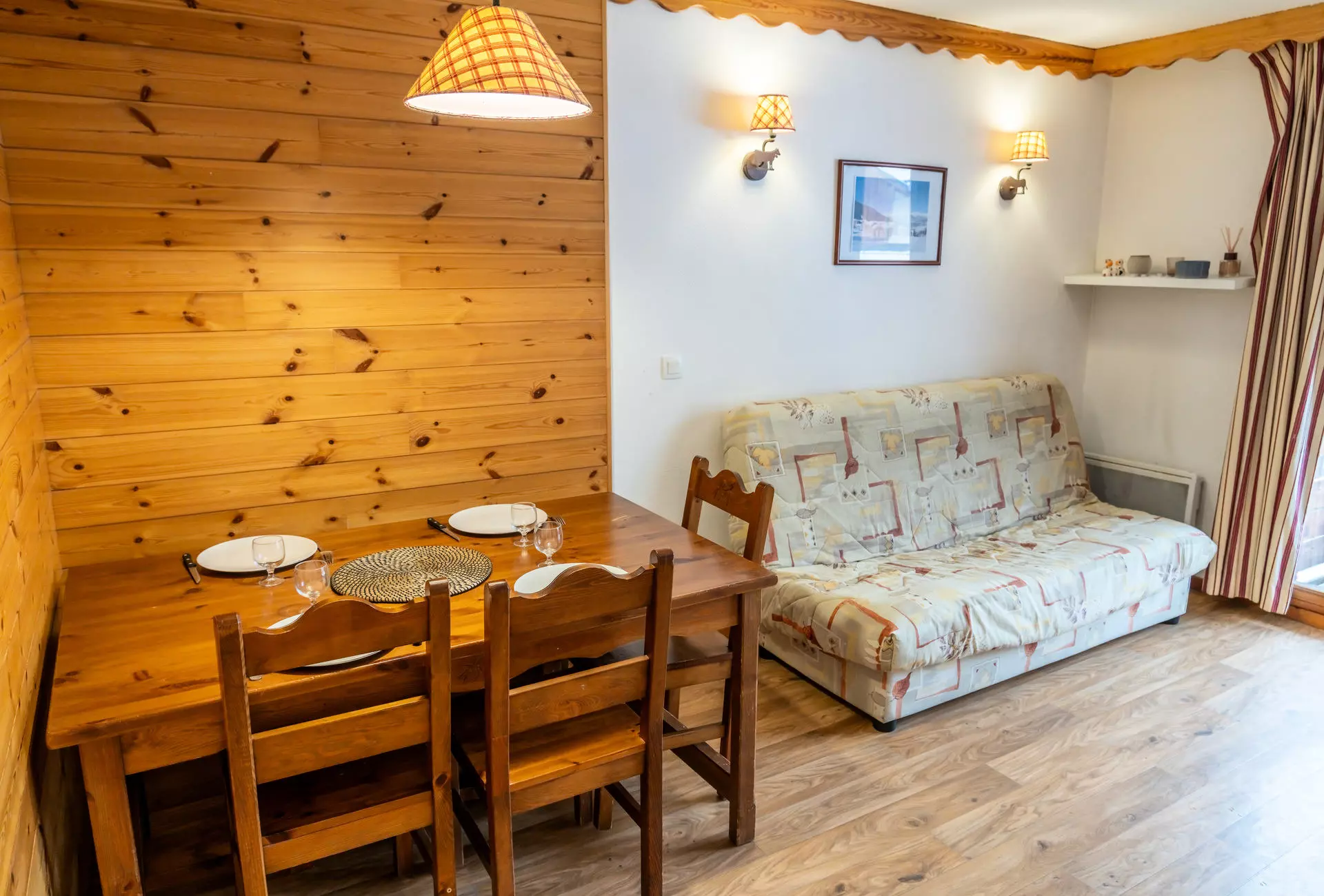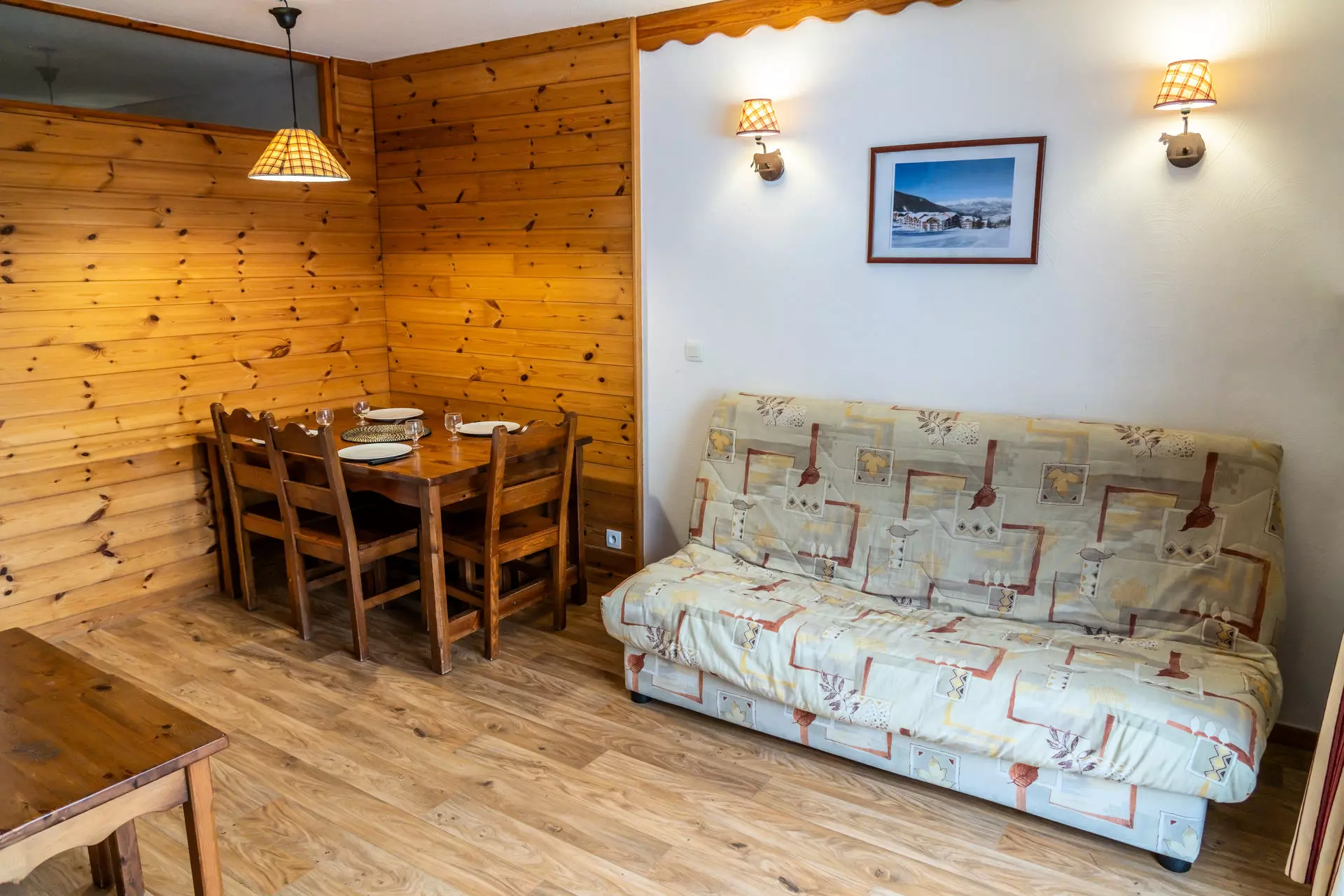 This 34 m² apartment can accommodate up to 6 people. It is ideally located on the 2nd floor and just a stone's throw from the Orres 1800 shopping center, where you'll find all the amenities you need: a bakery, a supermarket, restaurants, ski rentals, and more.