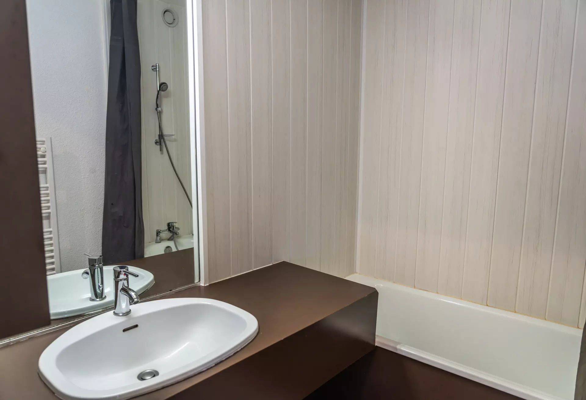 The bathroom has a bathtub, for a relaxing moment after your favorite activities.