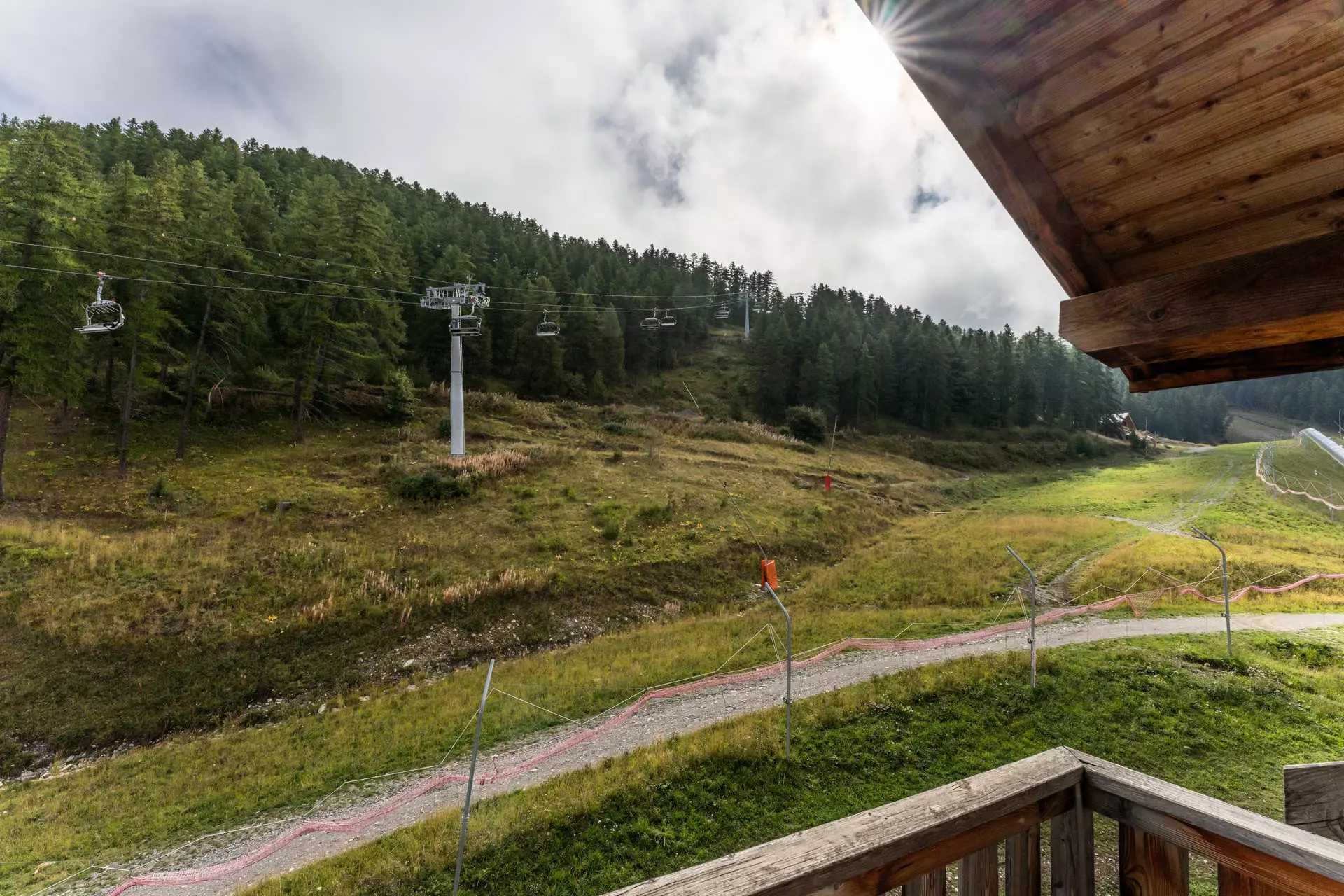 You will enjoy the view from your east-facing balcony over the ski slopes and the surrounding larch forest.