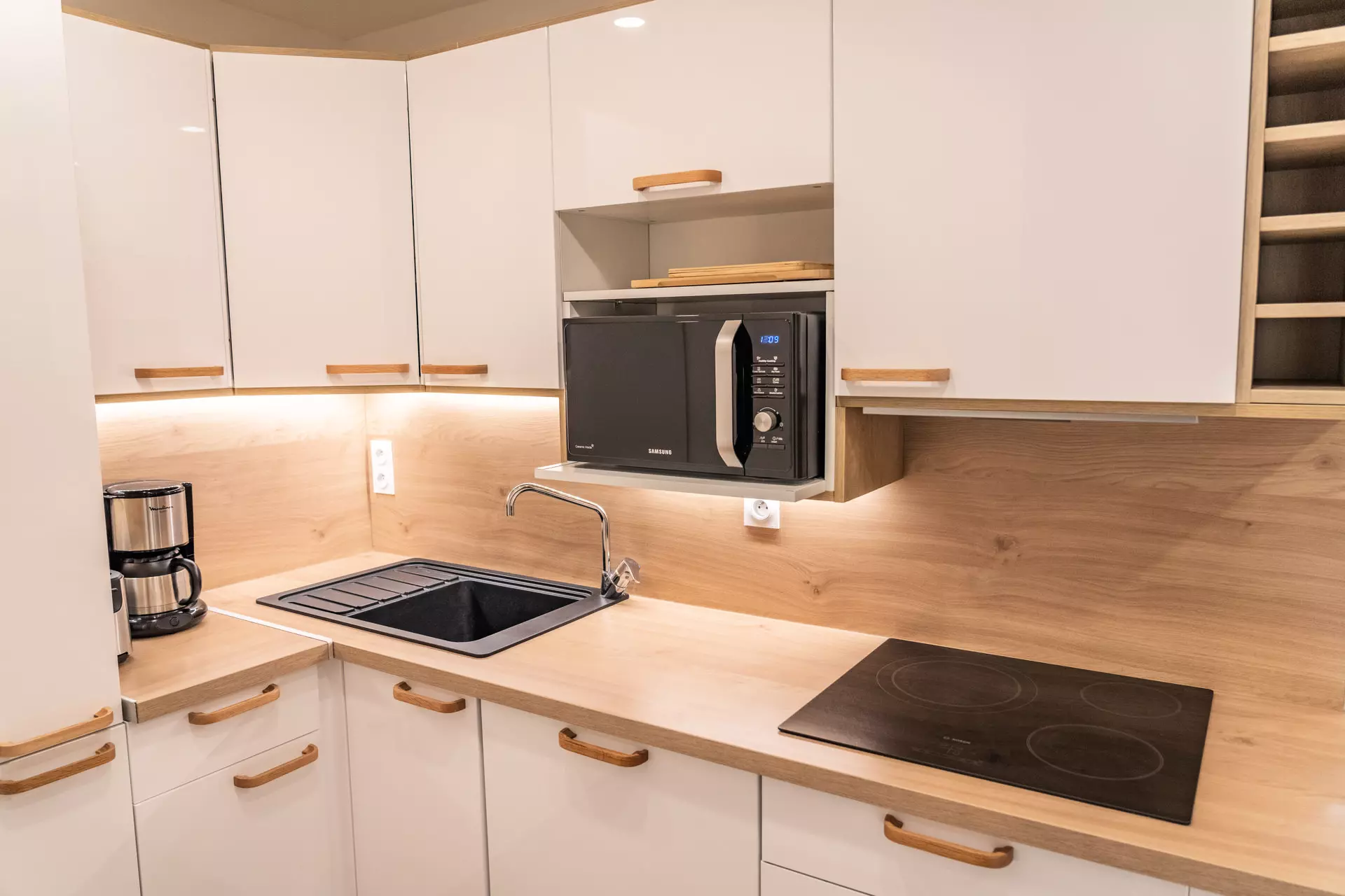 On the sleeping side, you will have a bedroom with a 140*190 cm double bed and a mountain corner with two 80*190 cm single beds, all equipped with quality bedding. To complete the set, the bathroom and its large Italian shower will be perfect for relaxing after your sporty days in the mountains.