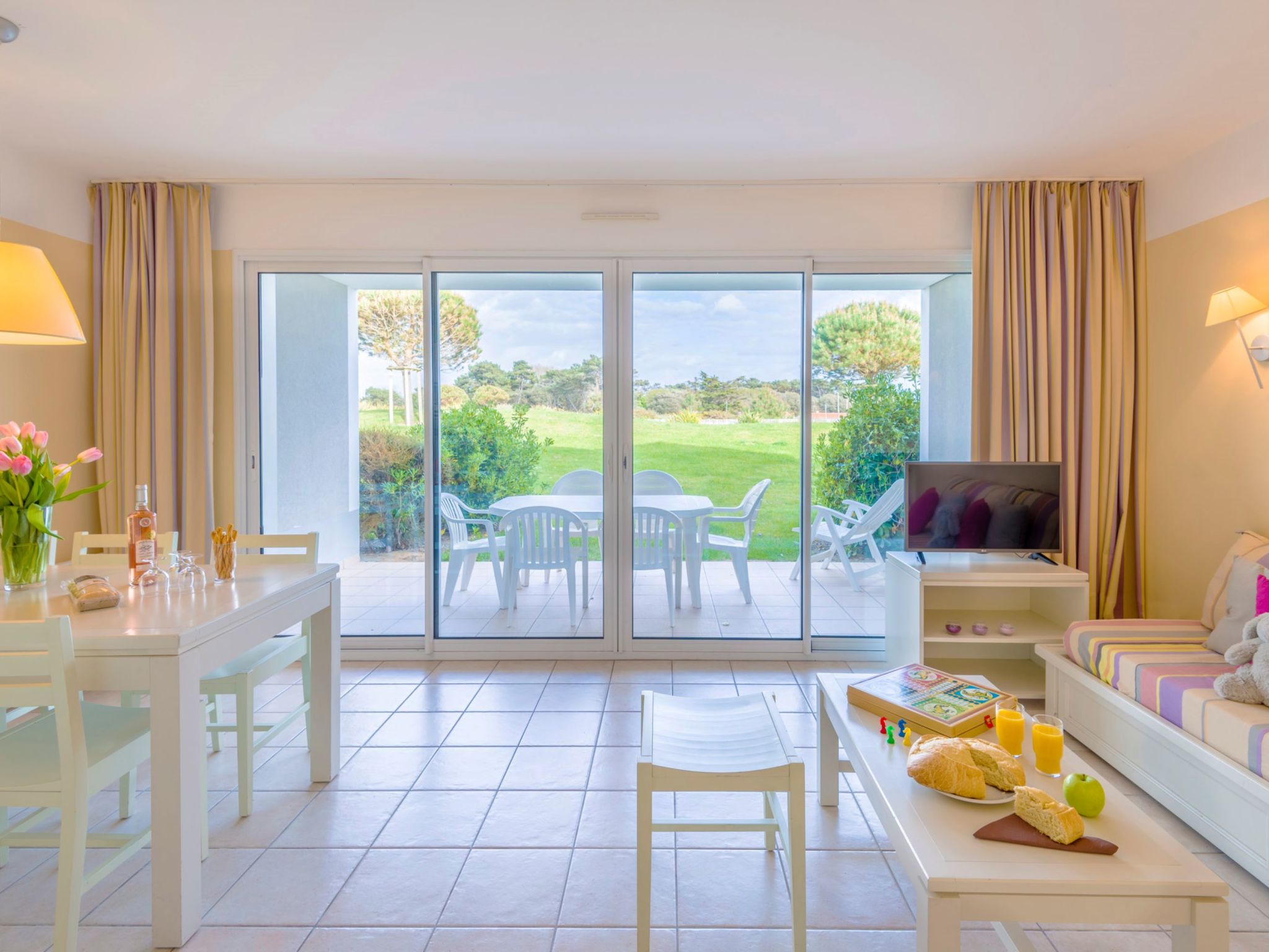 Resort "L'Estran", 2 storeys. 6 houses in the resort. 162 apartments in the residence. 4 km from the centre of Château d'Olonne, 4 km from the centre of Les Sables d'Olonne, 200 m from the sea. For shared use: property, well-kept garden with lawn, swimming pool heated (seasonal availability: 15.Apr. - 15.Sep.). Table tennis, children's playground. In the complex: reception, lift. Parking. Shop 200 m, bus stop "La Mouzinière" 2.8 km, sandy beach "du Tanchet" 2 km. Please note: the photograph shows a typical example. The holiday properties may differ in living space, floorplan, equipment and furnishing.