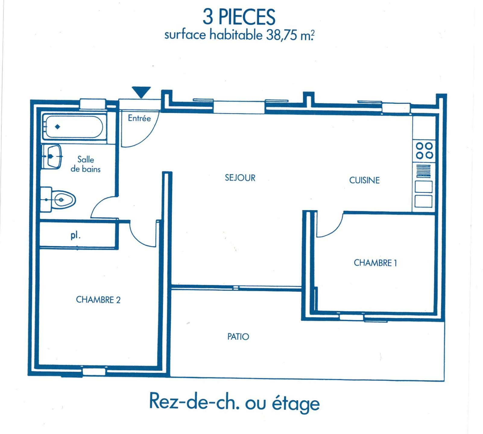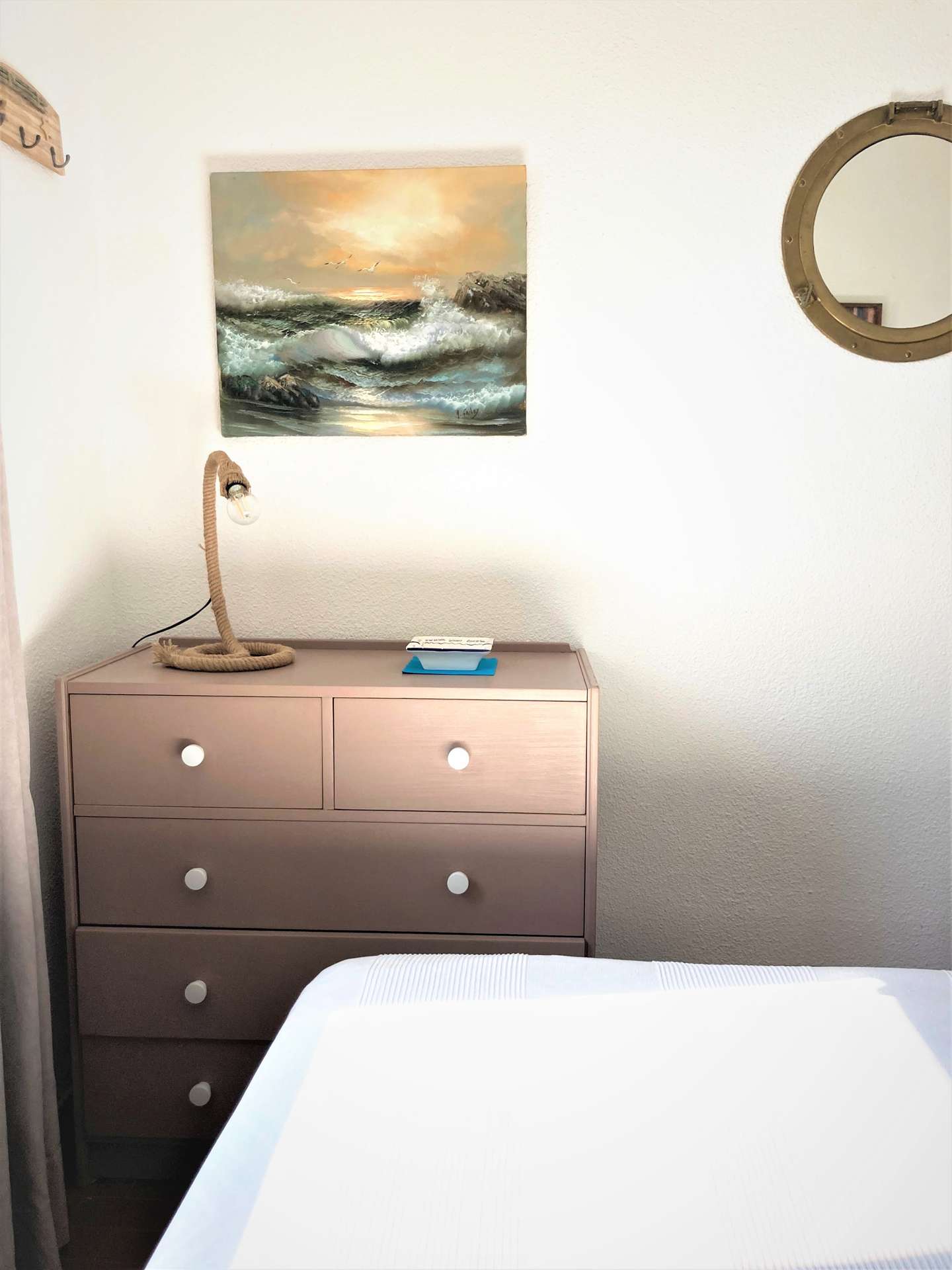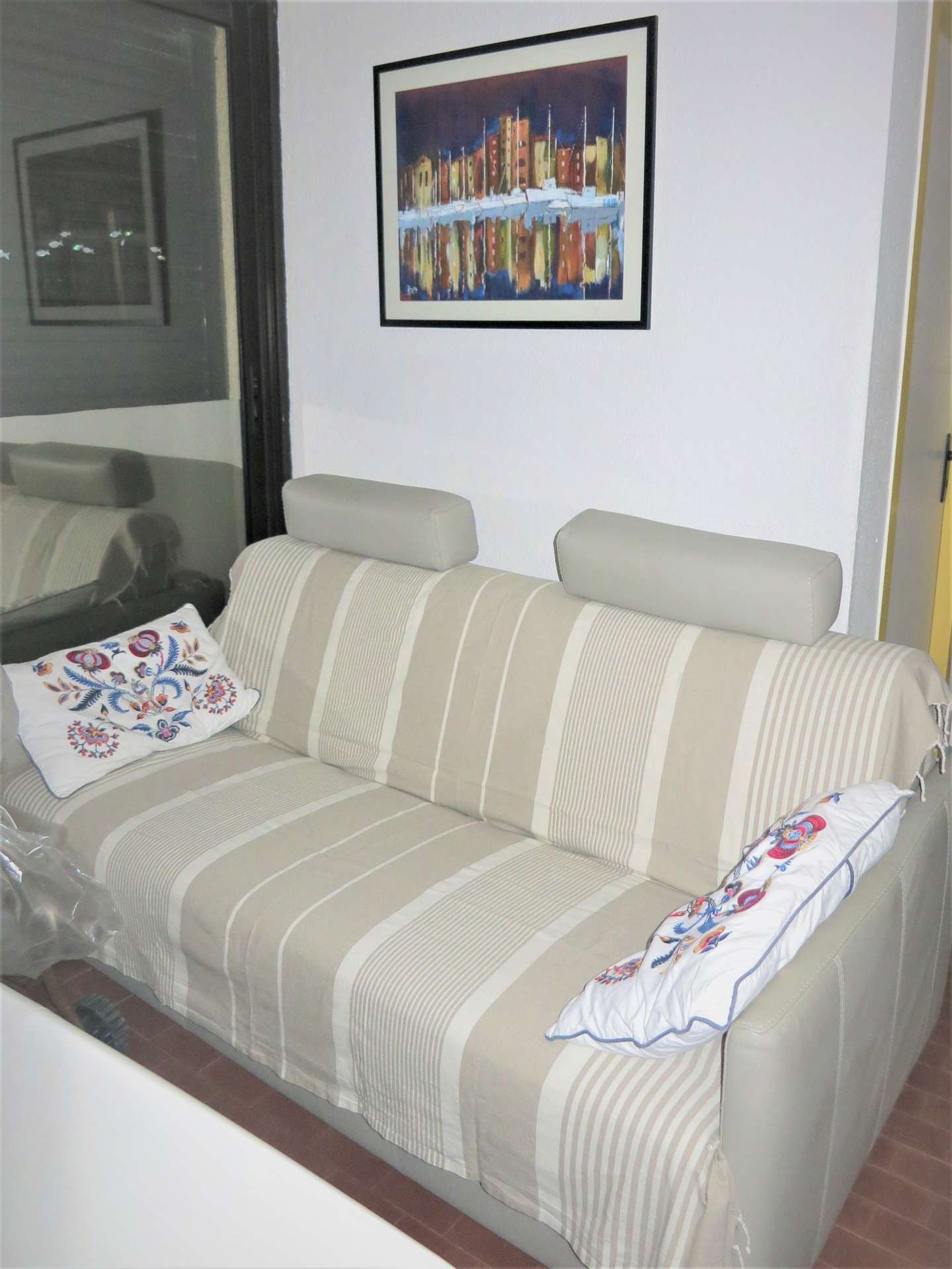 This seaside rental on the 1st floor includes a living room with a sofa bed, a fitted kitchen, a bedroom with a double bed, a bedroom with a sofa bed and a single bunk bed, a bathroom with toilet.