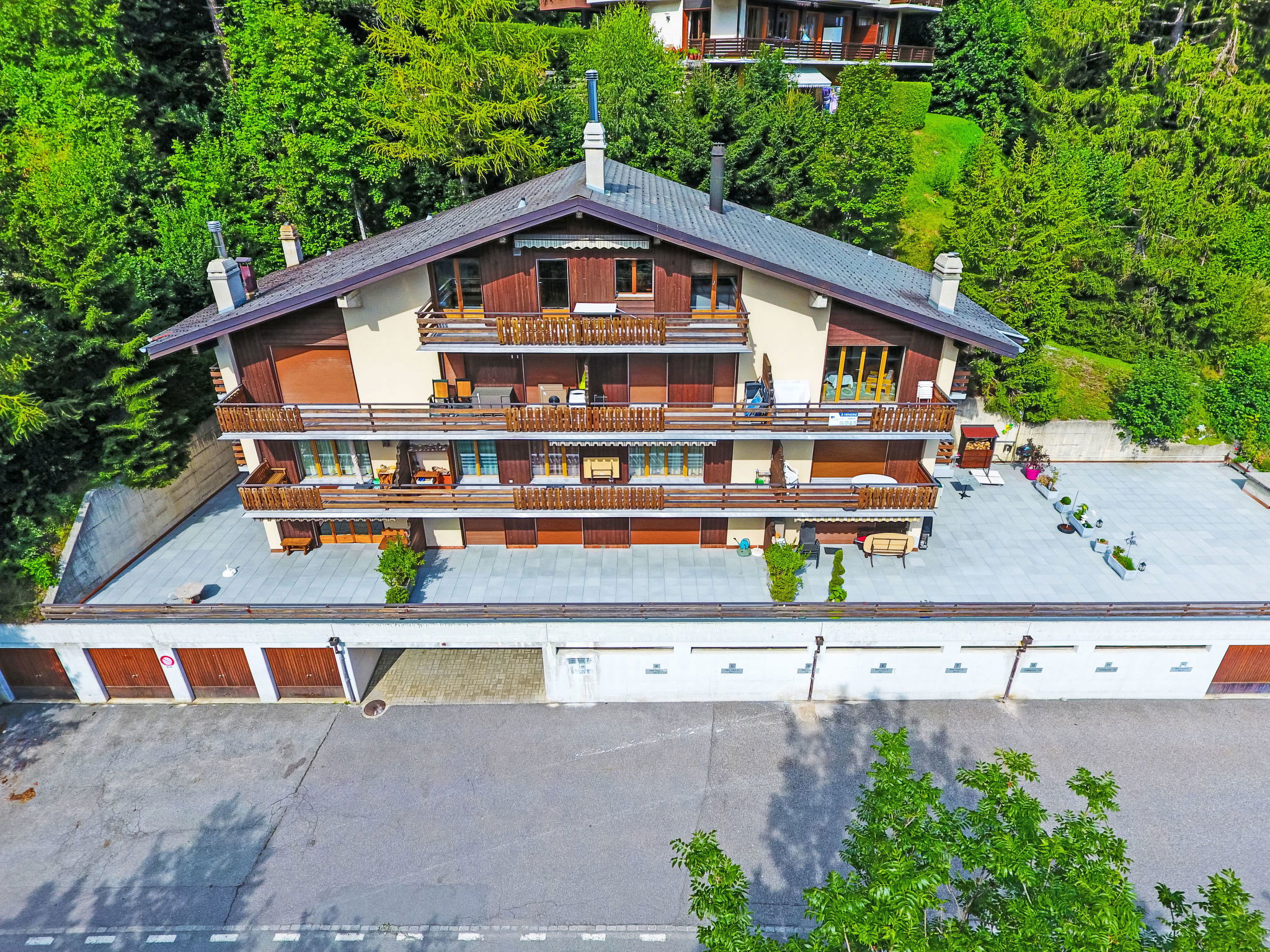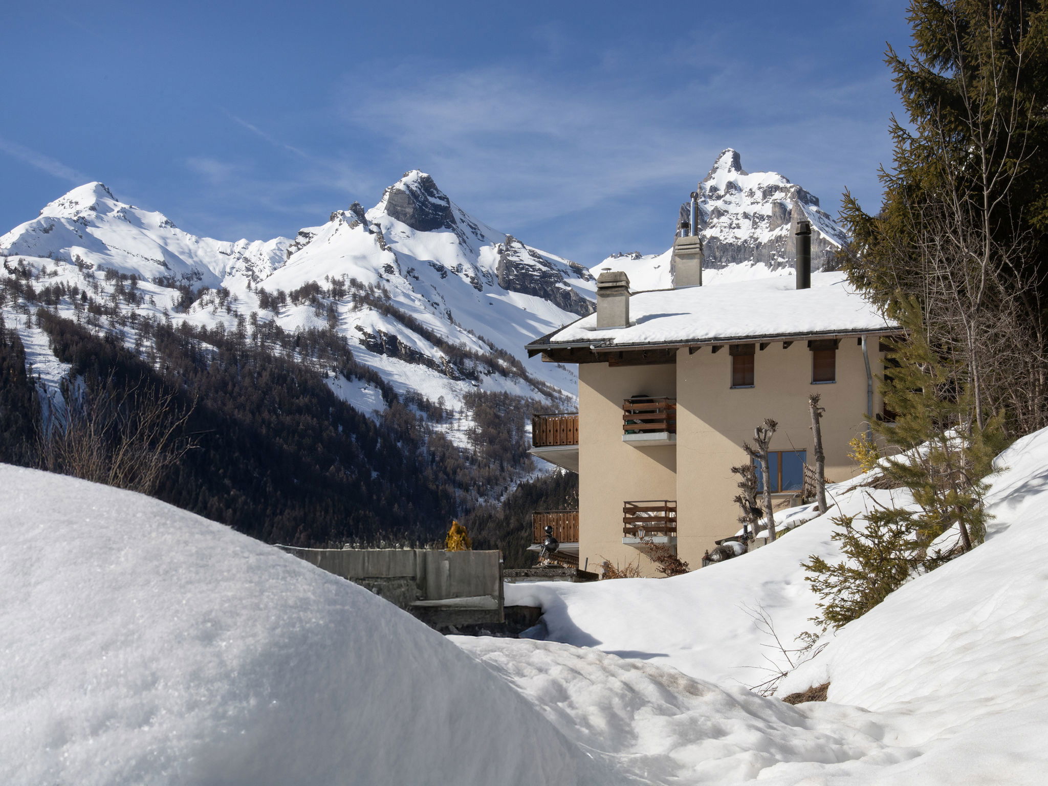 Apartment house "Tourbillon A et B". Above Ovronnaz, in the district of Tourbillon, in a quiet, sunny position, south facing position. In the house: lift, storage room for skis, central heating system, washing machine, tumble dryer (extra). Motor access to the house. Parking. Grocery 800 m, restaurant, bus stop 100 m, thermal baths 1 km. Tennis 100 m, skisport facilities 1 km, cross country ski track 600 m. Please note: car recommended. Additional accommodations can be booked. A lift is available in the building "Tourbillon A".