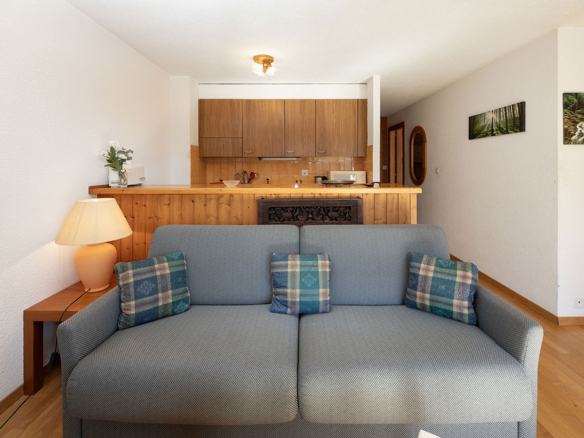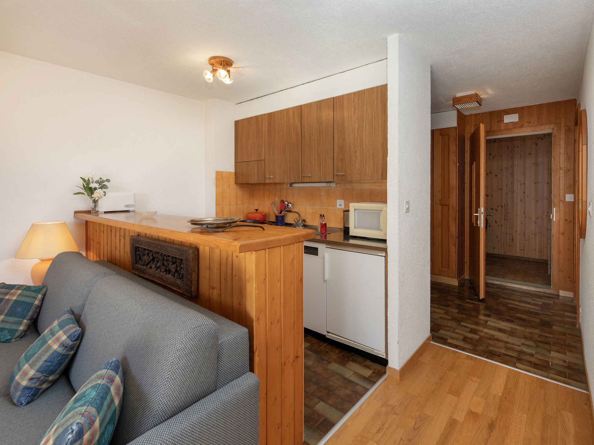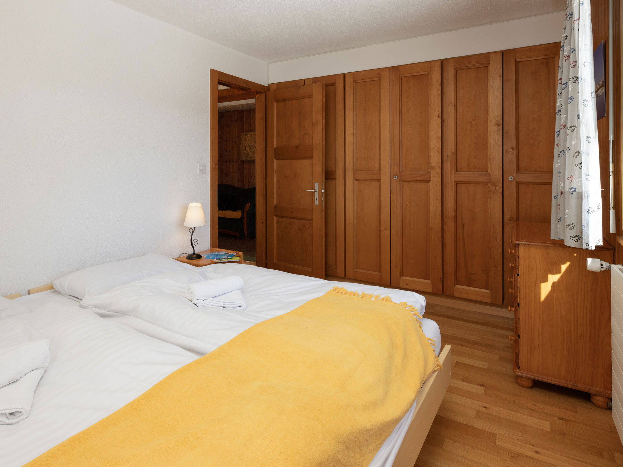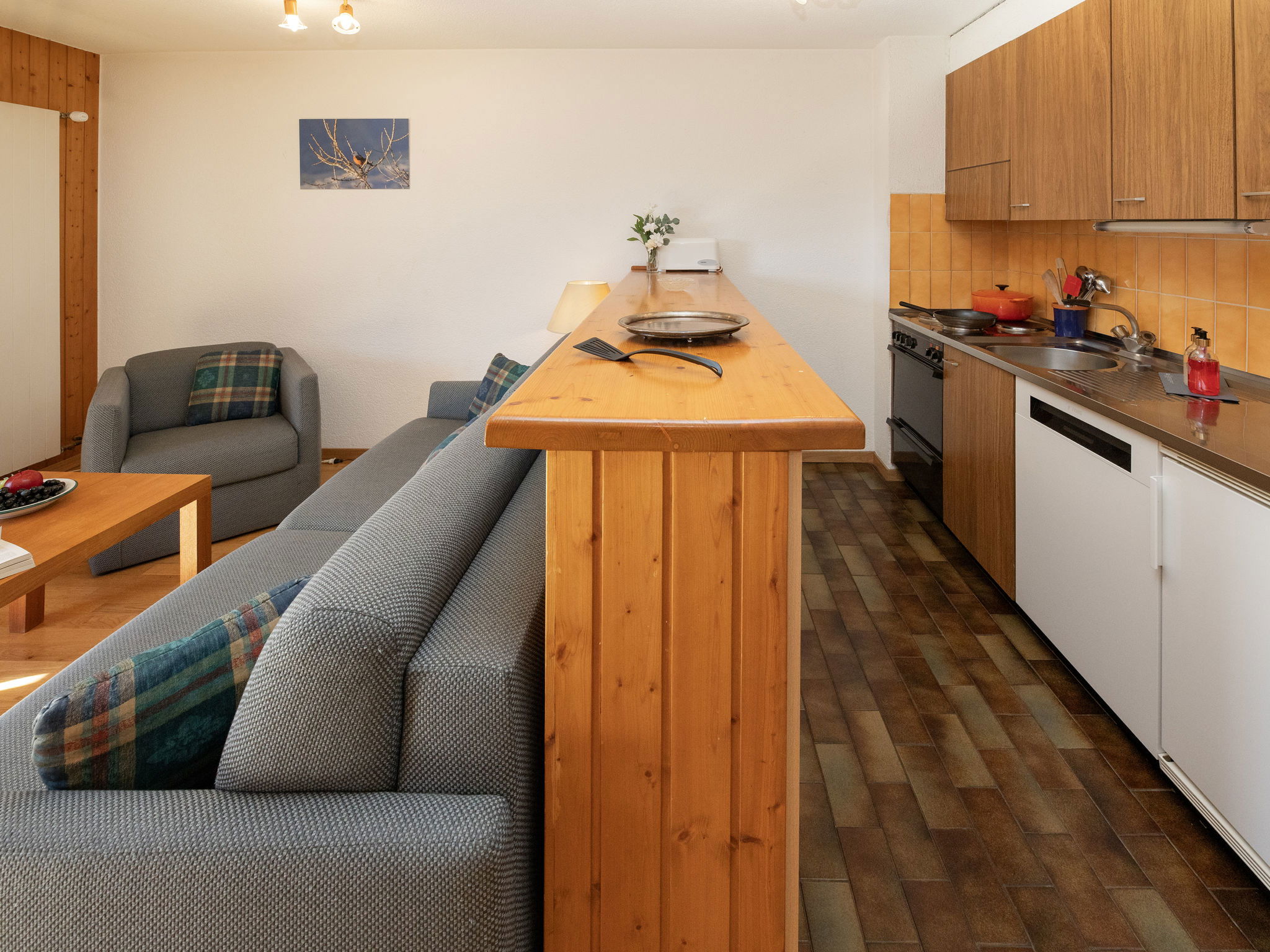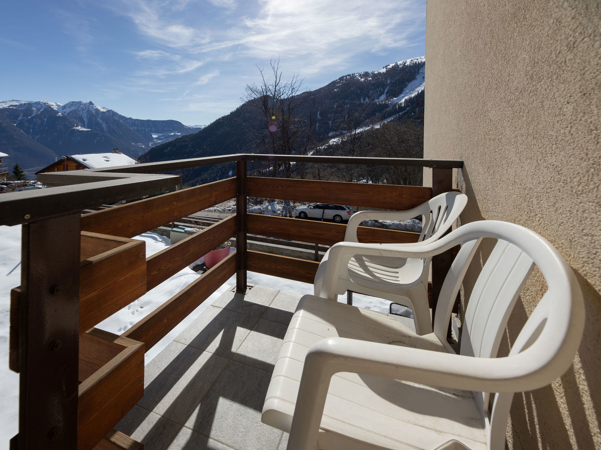 "Tourbillon B 27", 2-room apartment 45 m2 on 2nd floor, south-west facing position. Comfortable and tasteful furnishings: living/dining room with 1 double sofabed (1 x 160 cm, length 190 cm), cable TV and hi-fi system. Exit to the balcony. 1 room with 2 beds (90 cm). Kitchenette (3 hot plates, oven, dishwasher, microwave, electric coffee machine, Capsules for coffee machine (Nespresso) extra, fondue Set (chinoise, cheese)). Shower/WC. Balcony 8 m2, south facing position. Terrace furniture, deck chairs (2), box-room. Beautiful view of the mountains. Facilities: iron. Internet (WiFi, free). Parking. Please note: non-smokers only. Maximum 1 small pet/ dog allowed.