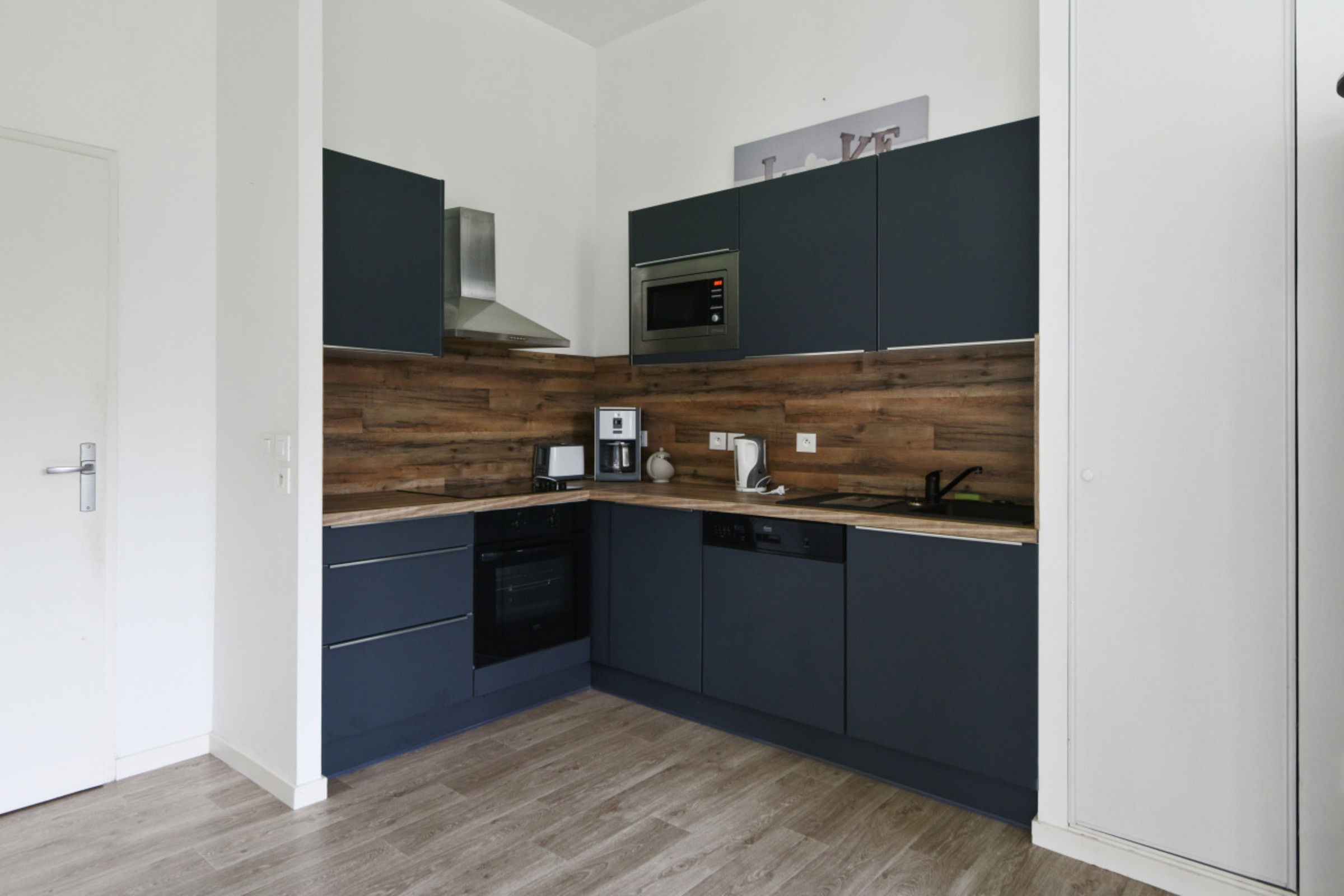 - a well-equipped kitchen (kettle, coffee machine, toaster, oven, micro-wave, hot plaques, fridge, dish washer),