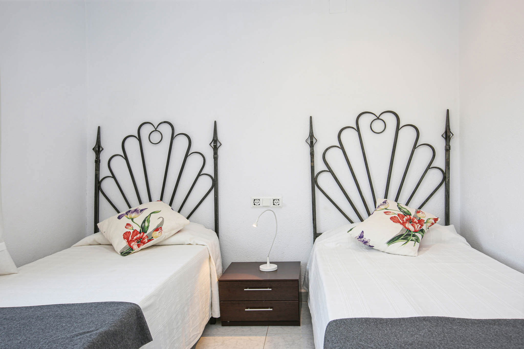 It has 1 room with a double bed (135x190cm), 2 rooms with 2 single beds (90x190cm) in each one.