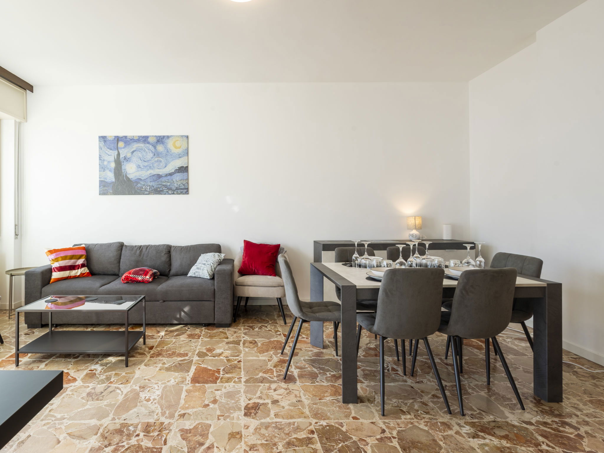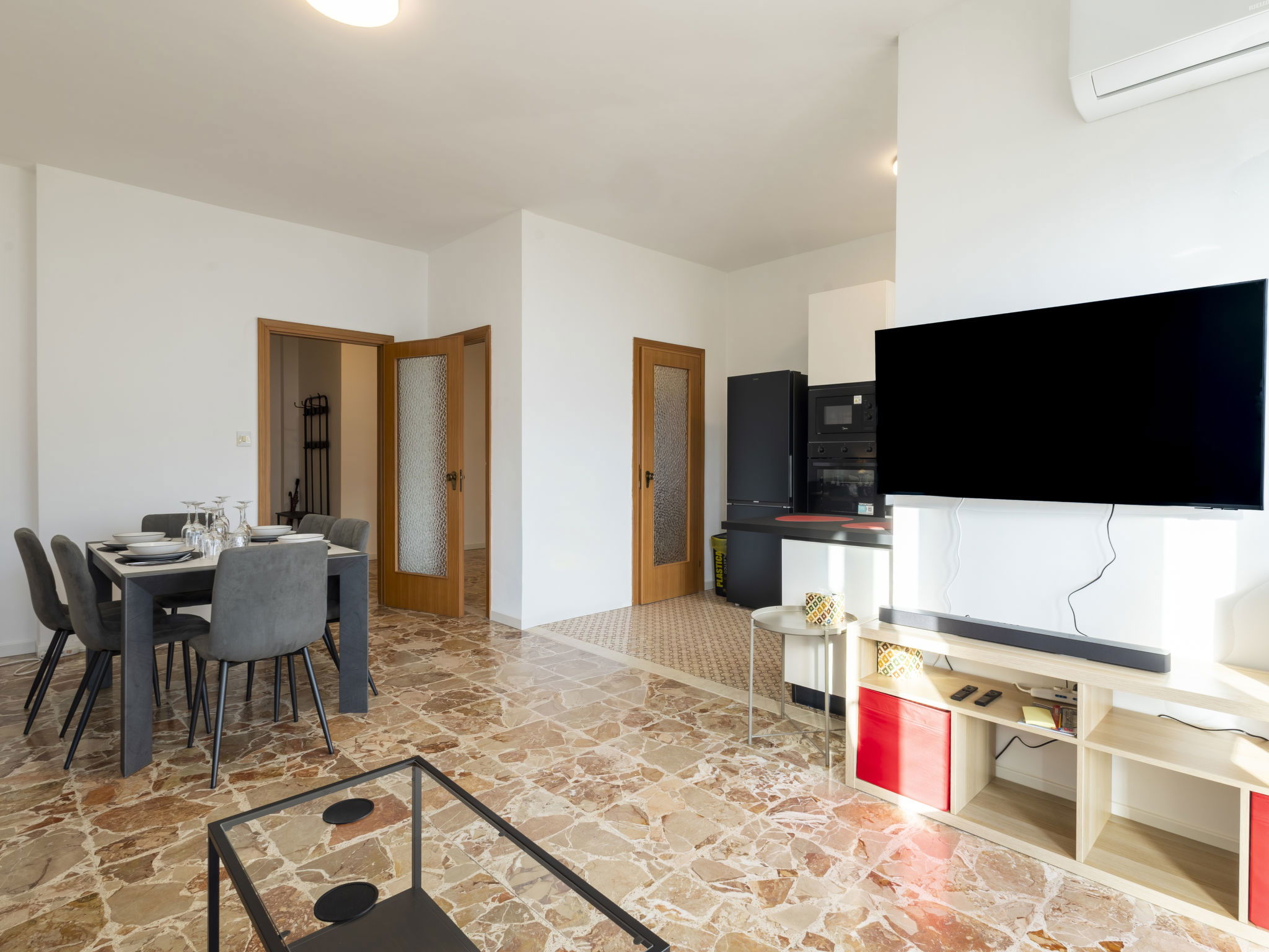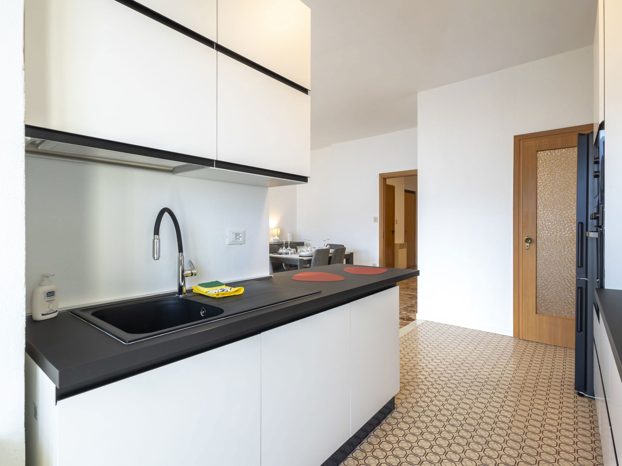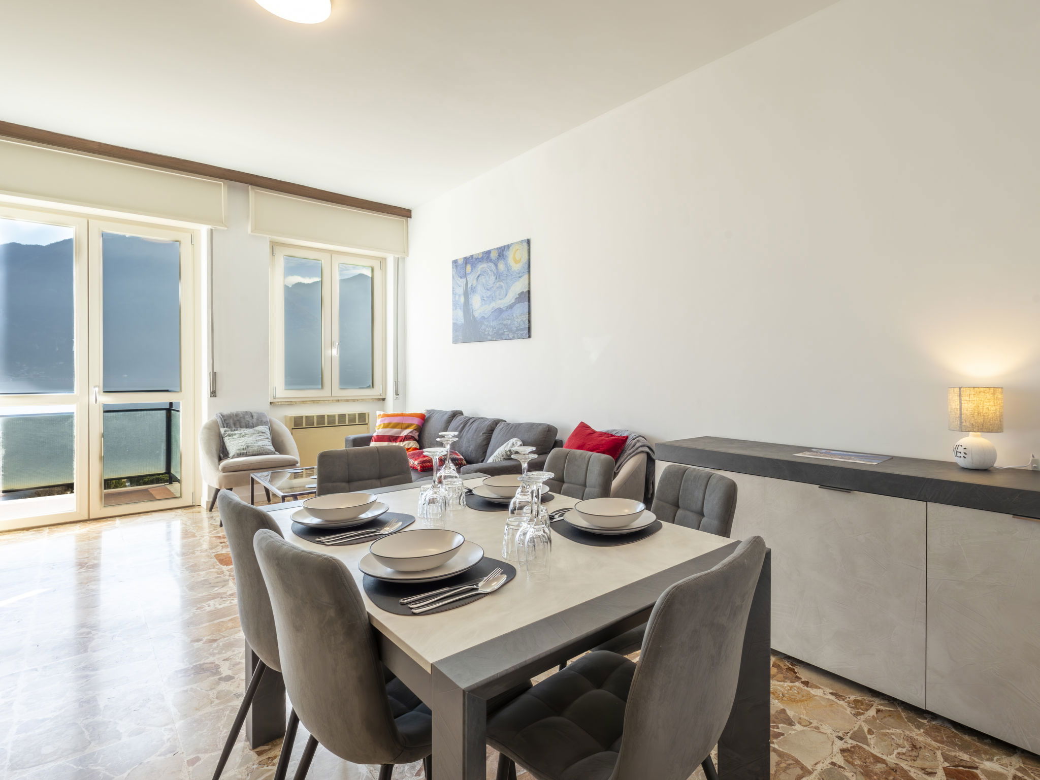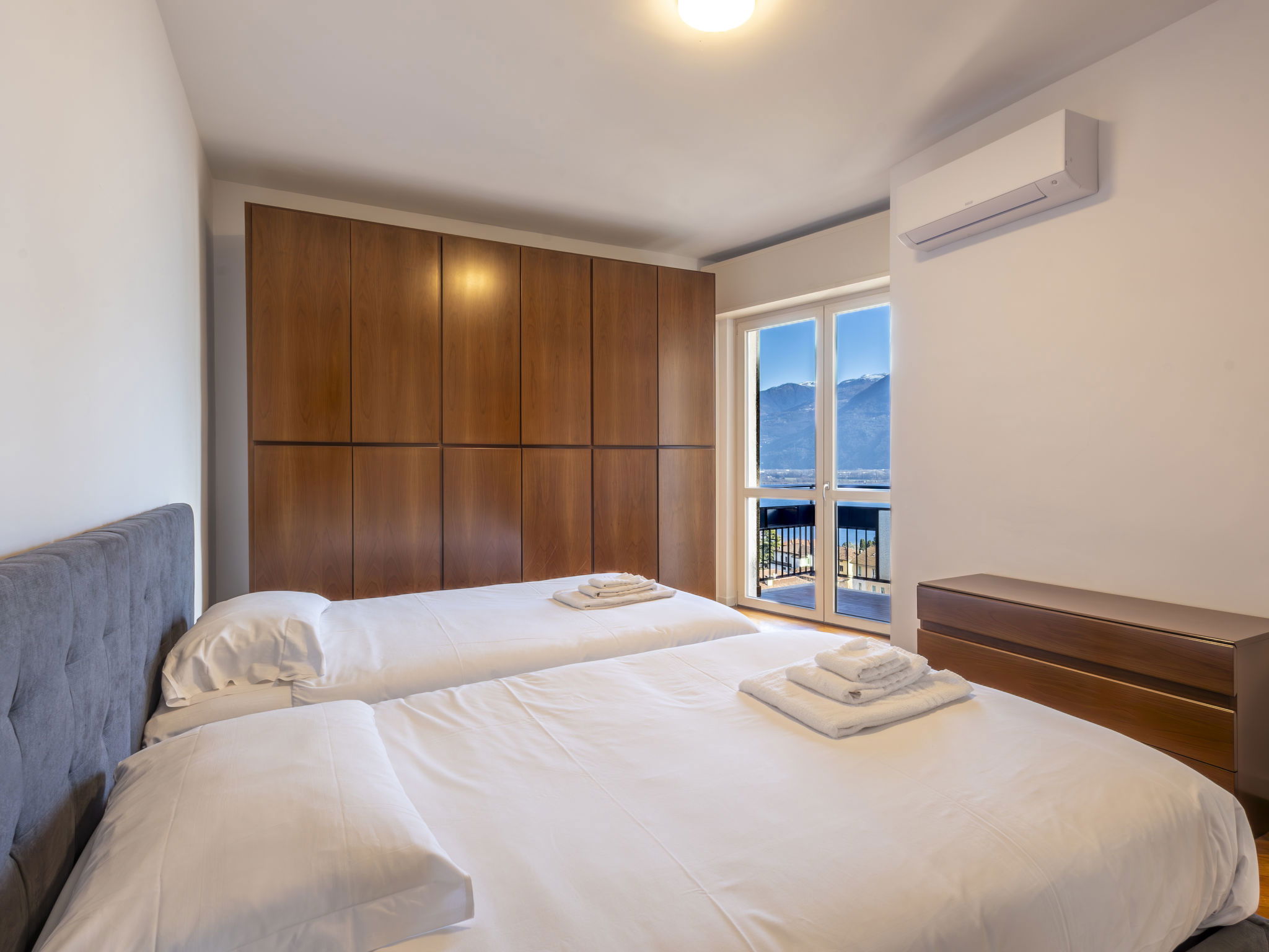 3-room apartment 104 m2 on 4th floor, south-east facing position. Bright, partly renovated in 2025, comfortable and tasteful furnishings: large living/dining room with panoramic window with 1 sofabed (122 cm, length 182 cm), dining table and TV. Exit to the balcony. 1 room with panoramic window with 1 double bed. Exit to the balcony. 1 room with panoramic window with 2 beds. Exit to the balcony. Large kitchenette (oven, dishwasher, 5 gas rings, toaster, kettle, microwave, freezer, electric coffee machine, Capsules for coffee machine (Nespresso) free) with small dining table. Shower/bidet/WC. Heating, air-conditioning. Parquet floors, natural stone floors. Large balcony. Balcony furniture. Beautiful panoramic view of the lake, the mountains and Lago di Iseo. Facilities: washing machine, children's high chair, baby cot (extra), hair dryer. Internet (WiFi, free). Garage. Please note: suitable for families. Non-smokers only. Maximum 1 pet/ dog allowed. Smoke alarm, fire extinguisher. IT016128C27N2JOUVF
