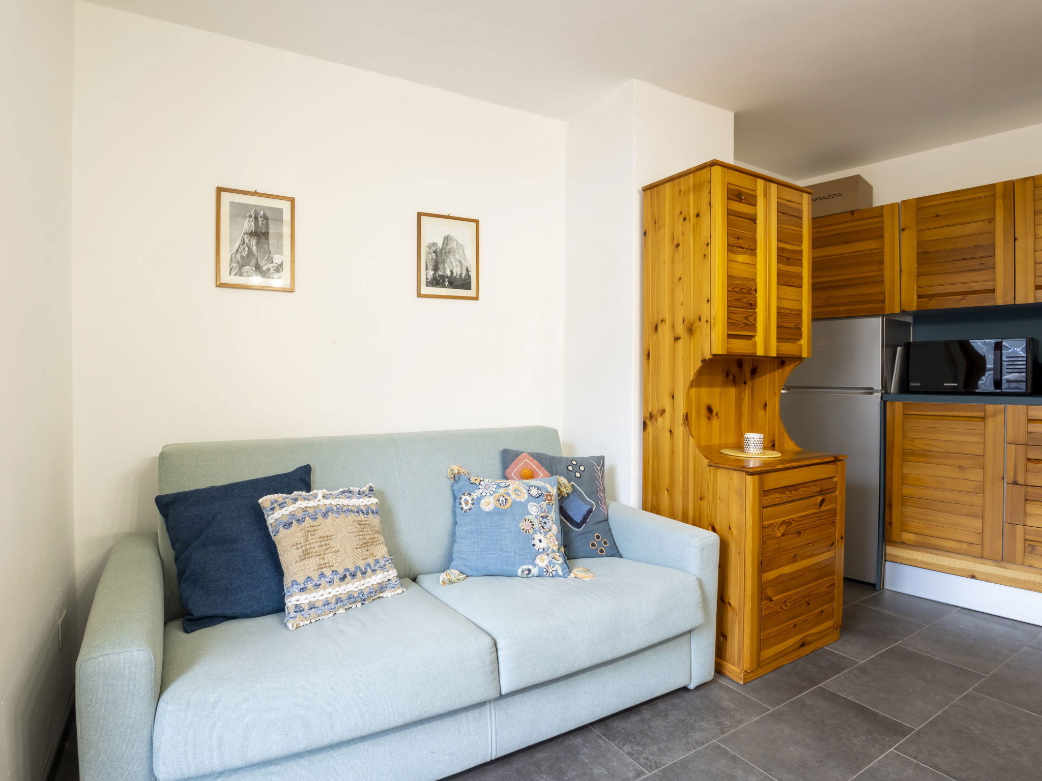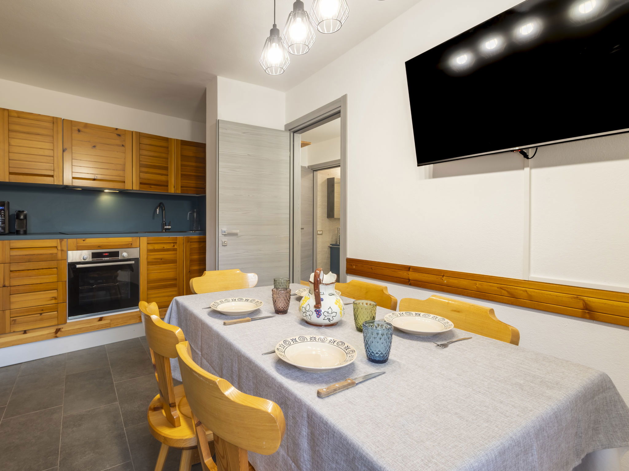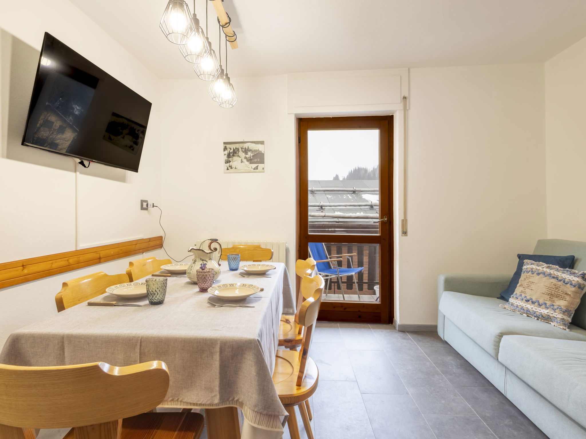 3-room apartment 50 m2 on 2nd floor, south facing position. Bright, fully renovated in 2025, comfortable and modern furnishings: entrance hall. Living/dining room with dining table, dining nook and TV. Exit to the balcony. 1 room with 1 double bed. Exit to the balcony. 1 room with 1 x 2 bunk beds. Kitchenette (oven, dishwasher, 4 induction hot plates, toaster, kettle, microwave, electric coffee machine, Capsules for coffee machine (Nespresso)). Shower/bidet/WC. Heating. 2 balconies. Balcony furniture. View of the mountains. Facilities: children's high chair, baby cot. Internet (WiFi, free). Please note: suitable for families. Non-smokers only. Maximum 1 pet/ dog allowed. Smoke alarm, fire extinguisher, no lift. IT014035C2M7A7AB26