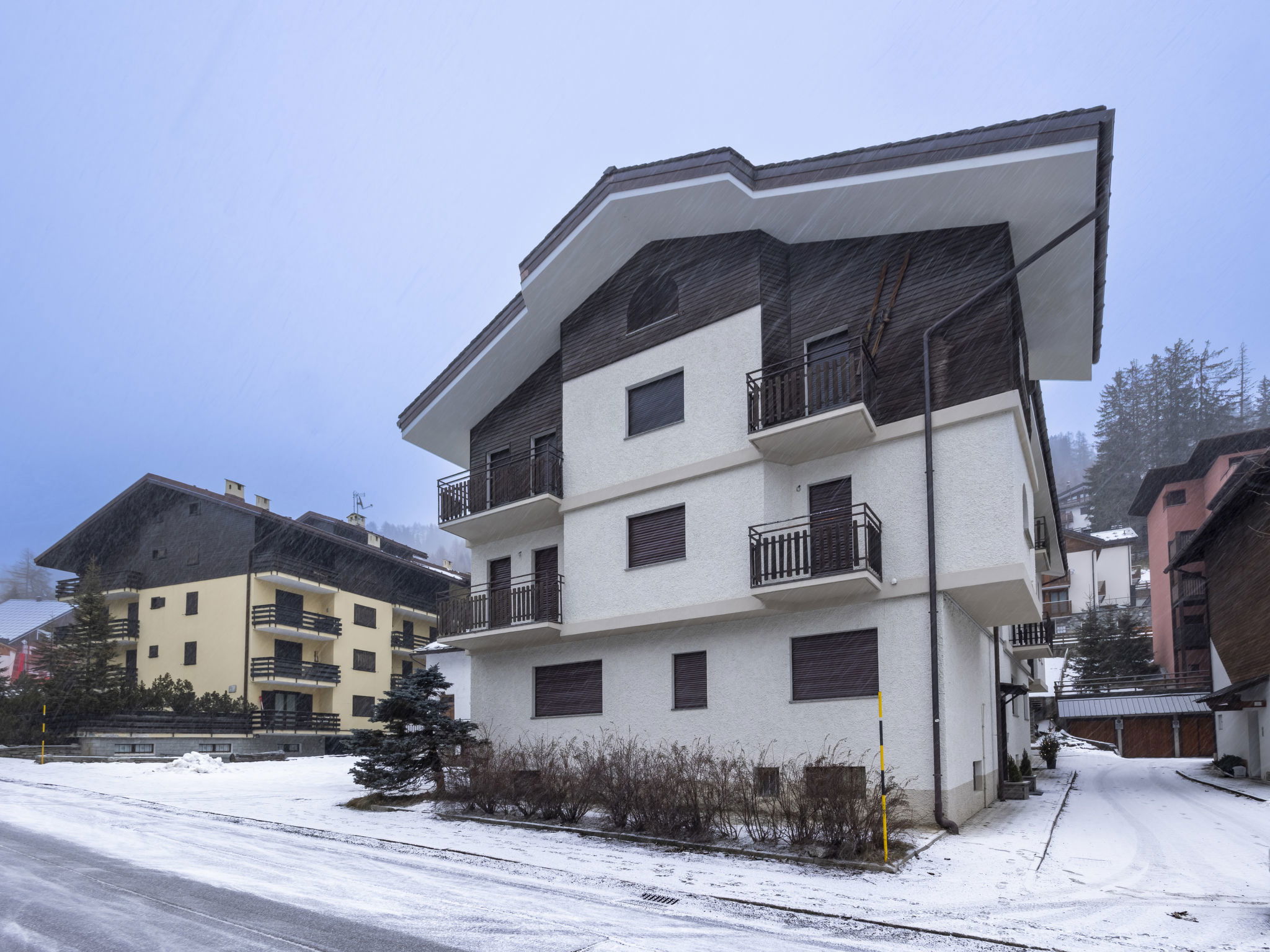 Small, comfortable apartment house "Cacciatori", 1'550 m a.s.l., 3 storeys. 400 m from the centre of Madesimo, in the residential district, excellent location: right in the centre but still quiet, 900 m from the skiing area. In the house: storage room for bicycles, storage room for skis, central heating system. Public parking on the road. Supermarket 700 m, restaurant, bar, café 300 m, bus stop 350 m. Chair lift, ski school, children's ski school 900 m. Well-known lakes can easily be reached: Lago di Como 45 km. Hiking paths: Andossi - Giardino Alpino Valcava, Lago d'Emet - Pizzo Spadolazzo, Sentiero del Cardinello, Val Febbraro.