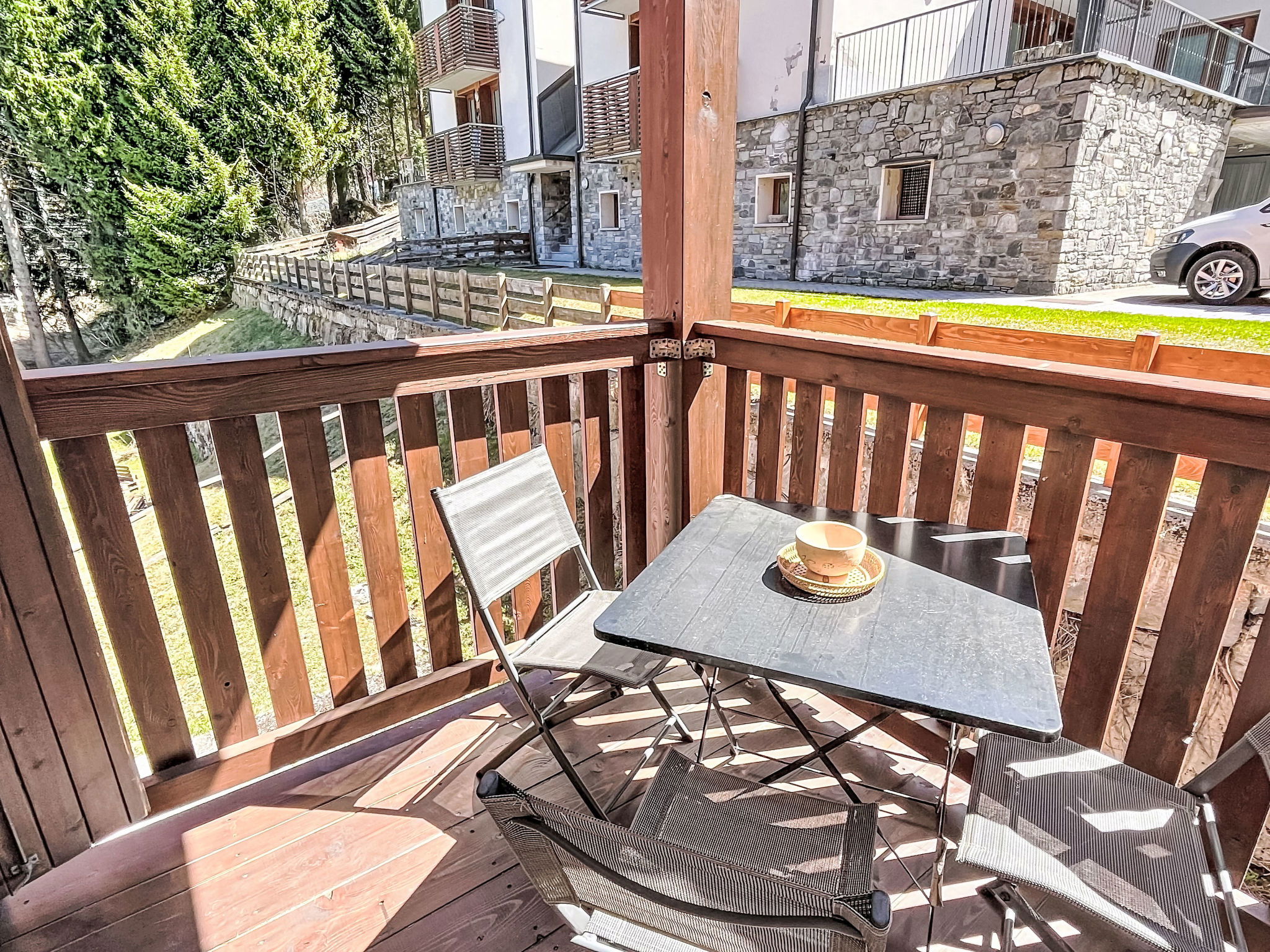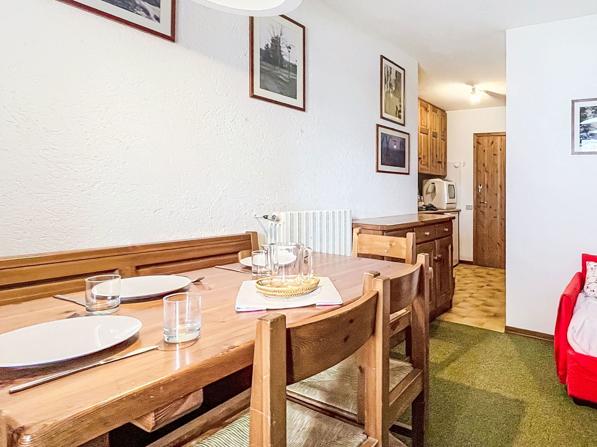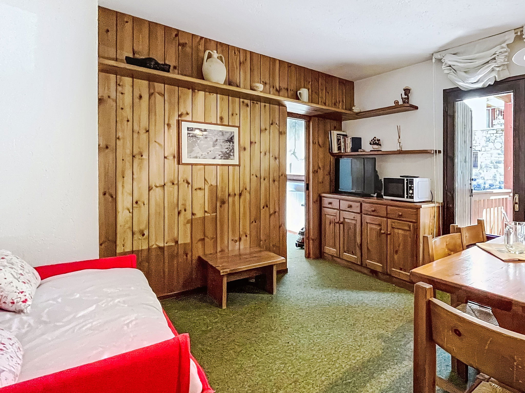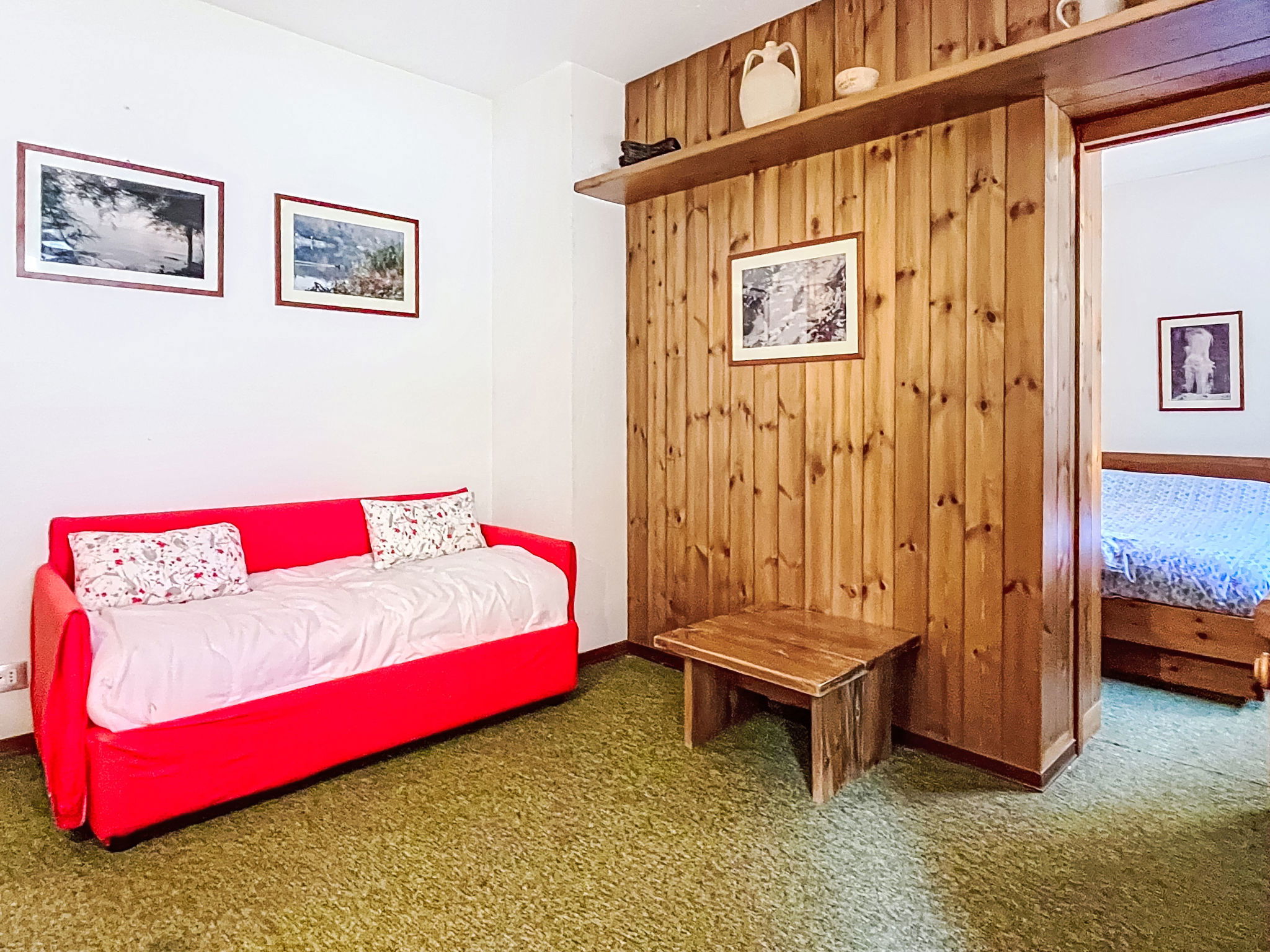 2-room apartment 40 m2 on 3rd floor. Practical and comfortable furnishings: living/dining room with 1 sofabed (110 cm, length 180 cm), dining table and TV. Exit to the balcony. 1 room with 1 double bed. Kitchenette (dishwasher, 4 induction hot plates, toaster, kettle, microwave). Shower/bidet/WC. Heating, boiler (100 litres). Carpet. Small balcony. Balcony furniture. View of the mountains and the forest. Facilities: children's high chair, baby cot, hair dryer. Please note: suitable for families. Fridge without freezer, non-smokers only. Maximum 1 pet/ dog allowed. Fire extinguisher. IT014035C2JCUJPGQE