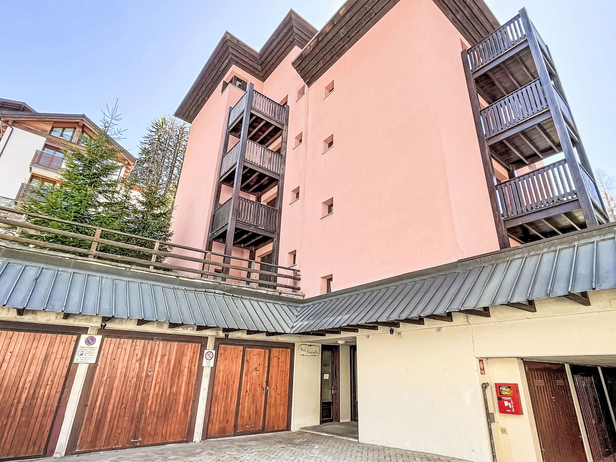 Comfortable apartment house "Cardinello Rosa", 1'550 m a.s.l., 5 storeys. In the centre of Madesimo, in a sunny position in the residential district, excellent location: right in the centre but still quiet, 350 m from the skiing area. For shared use: garden (not fenced). In the house: lift, storage room for bicycles, storage room for skis, central heating system. Single garage, public parking on the road. Supermarket 800 m, restaurant, bar, café 500 m, bus stop 400 m. Chair lift 350 m, ski rental 300 m, ski school, children's ski school 700 m. Well-known lakes can easily be reached: Lago di Como 45 km. Hiking paths: Andossi - Giardino Alpino Valcava, Lago d'Emet - Pizzo Spadolazzo, Sentiero del Cardinello, Val Febbraro.