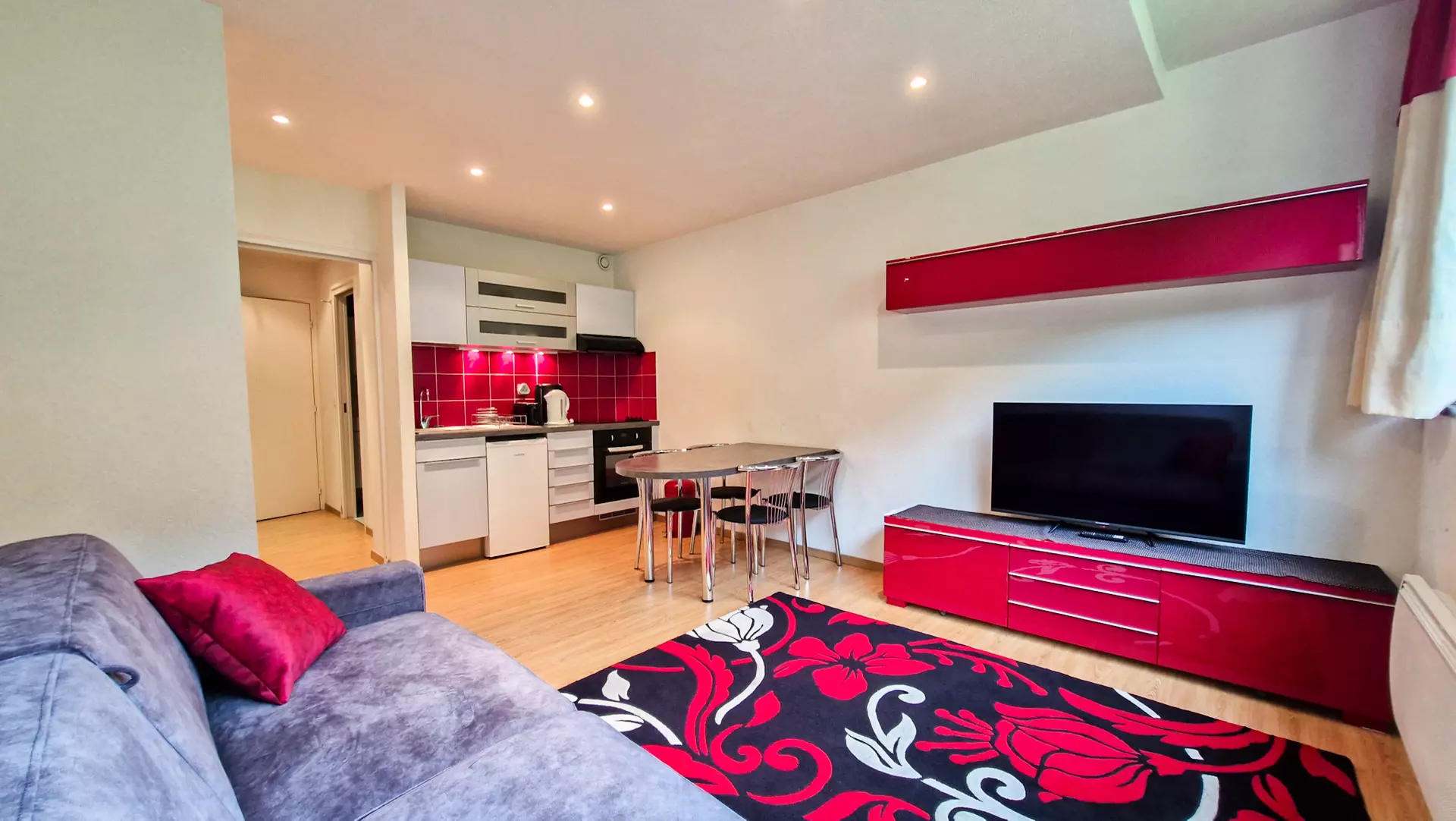 - Kitchenette with 4 ceramic hobs and oven