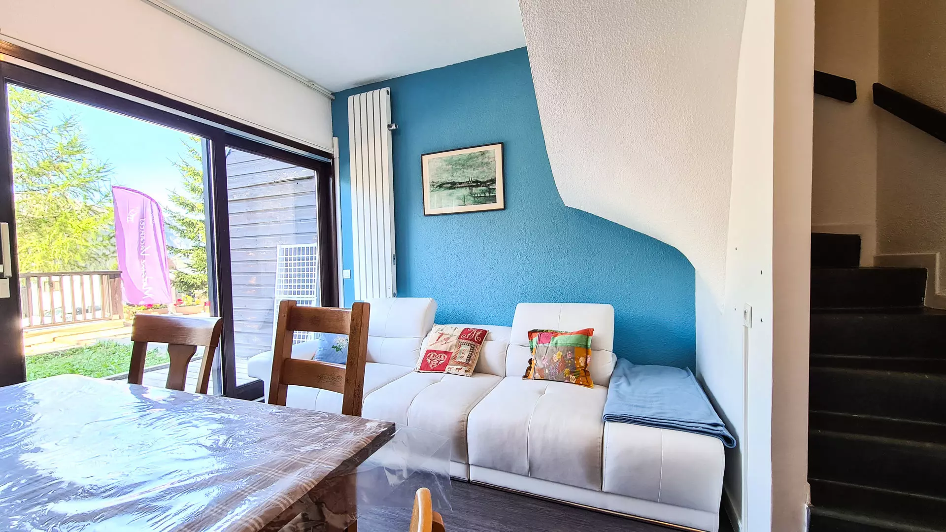 - Large south-facing terrace on the garden level with a table, 6 chairs and 2 deckchairs