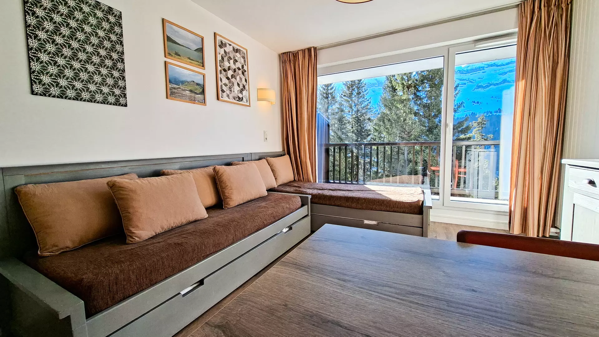 2 rooms South equipped for 4 people 32 m2 with large living room on the ground floor with south balcony not overlooked