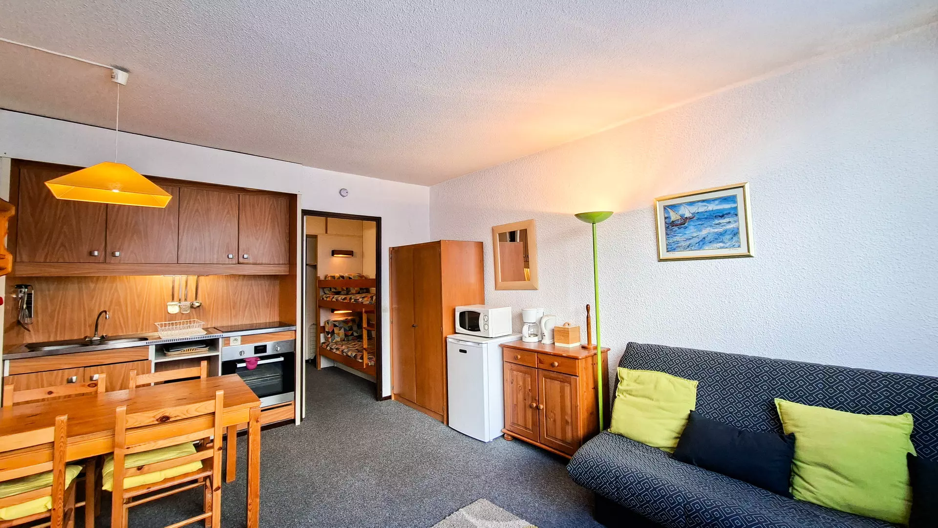 - Kitchenette with ceramic hob and oven