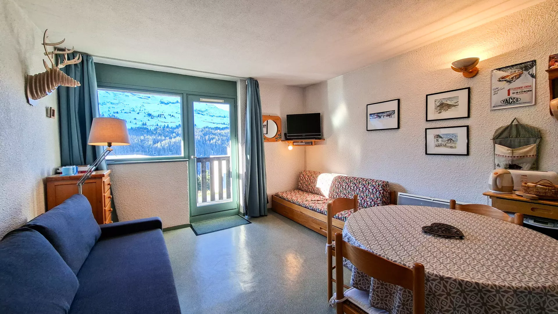 South-facing studio apartment, 25 m², on the 1st floor, with a south-facing balcony.