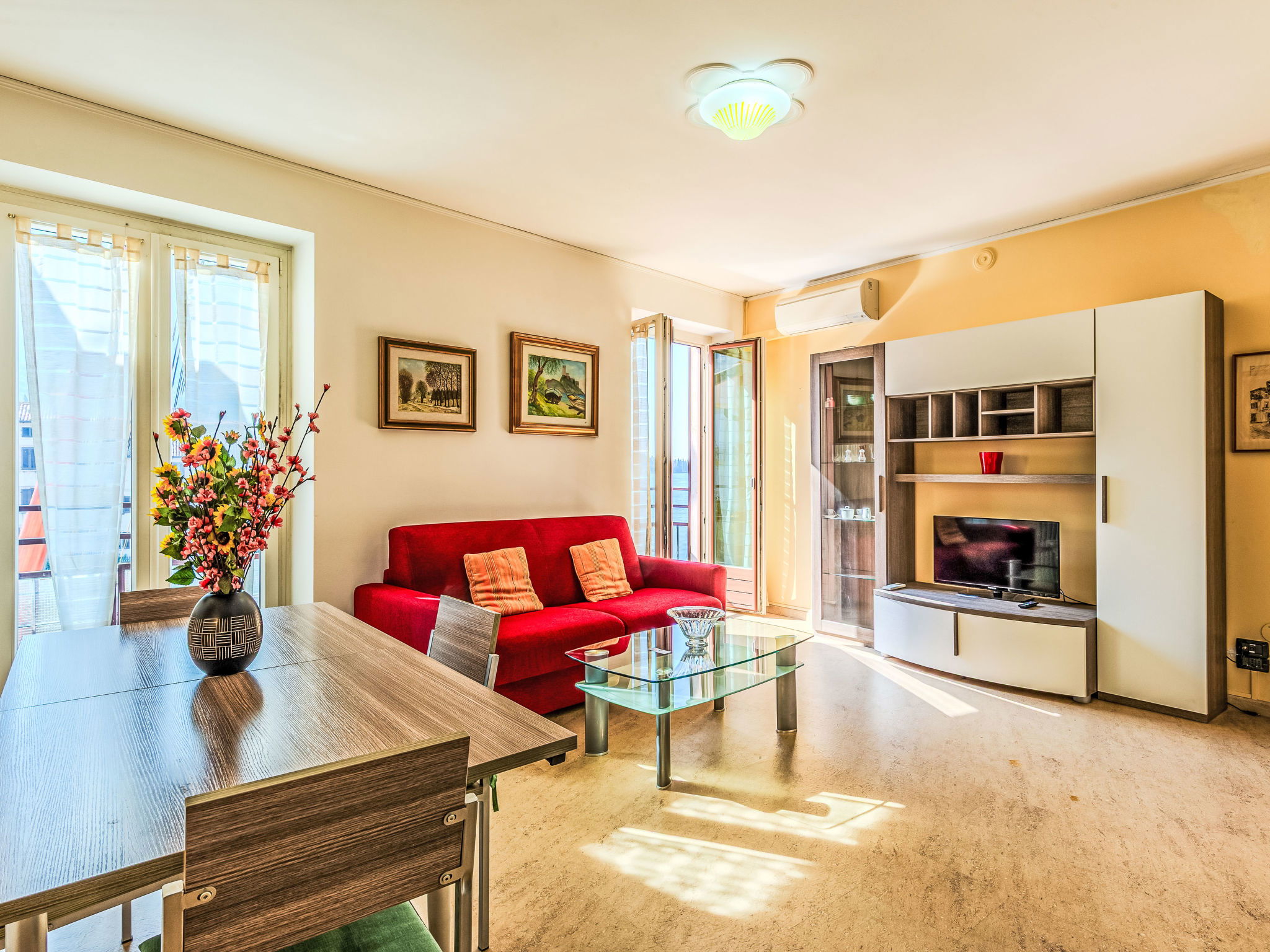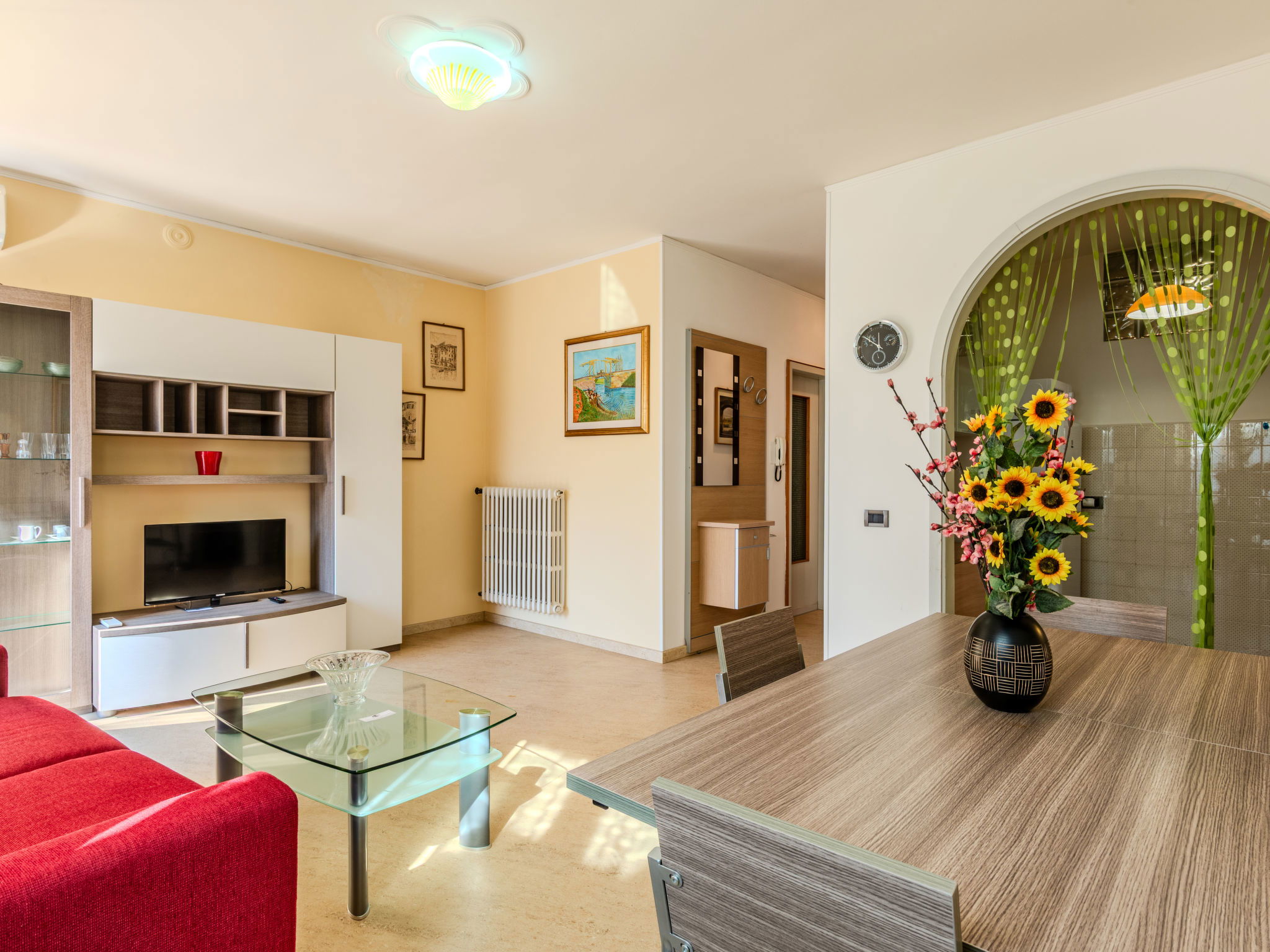 "Claudia", 2-room apartment 60 m2 on 2nd floor, south facing position. Bright, modern and cosy furnishings: living/dining room with panoramic window with 1 sofabed and TV. Exit to the balcony, south facing position and east facing position. 1 double bedroom. Kitchen (oven, 2 ceramic glass hob hotplates, kettle, microwave, freezer, electric coffee machine). Shower/bidet/WC. Heating, air-conditioning. Heating available only from 15.11. to 20.05. Small balcony. Balcony furniture, sitting area. Marvellous panoramic view of the lake and the countryside. Facilities: washing machine, iron, hair dryer. Internet (WiFi, free). Please note: no parking. 1 small pet/ dog allowed. Fire extinguisher, no lift. IT023045C2TJYV99EN