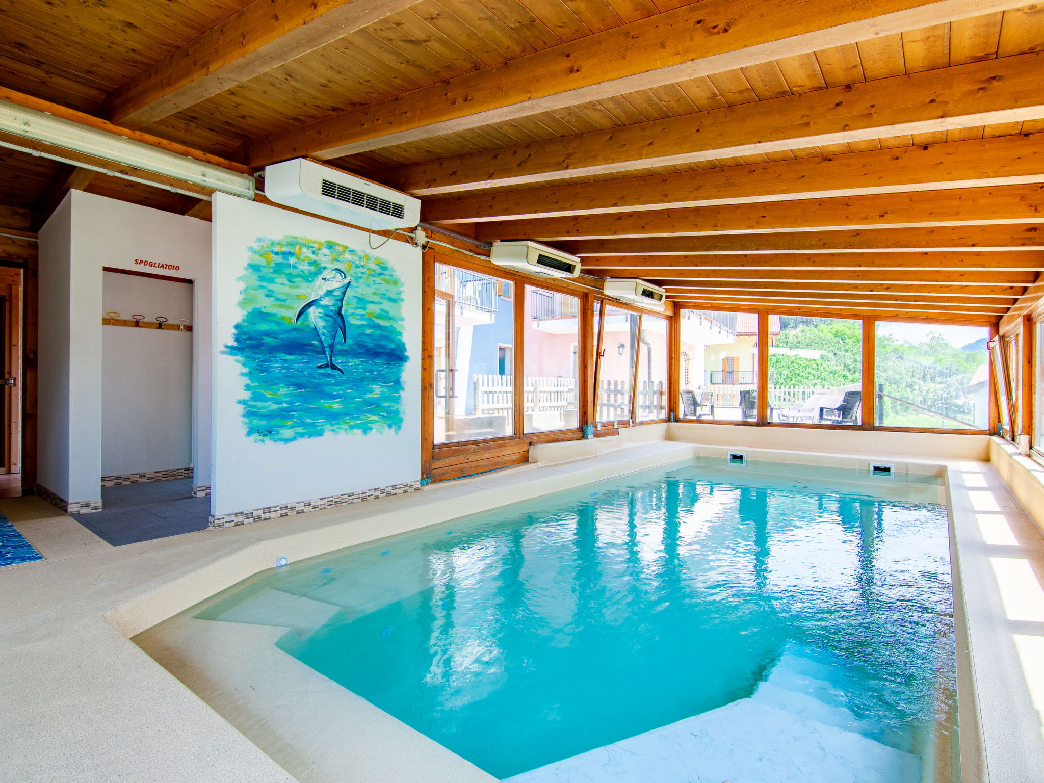 Val di Sole: Small, comfortable residence "Al Pescatore", 3 storeys, surrounded by trees and fields. 15 apartments in the residence. In the hamlet Tozzaga 4 km from the centre of Caldes, 7 km from the centre of Malè, in a quiet position on a slope. For shared use: garden, swimming pool, indoor pool heated (4 x 10 m, depth 130 cm, seasonal availability: 01.Jun. - 15.Sep. pool opening hours: 10:00-19:00). Terrace, garden furniture. In the complex: restaurant, bar, WiFi, sauna, steam room, solarium, hot tub, storage room for skis, central heating system. Stepped path to the house. Parking (limited number of spaces) at the house, communal covered parking (extra) at the house. Shop, restaurant 50 m, bus stop 100 m, railway station "Tozzaga" 500 m, park "Parco Nazionale dello Stelvio" 28 km. Slopes 15 km. Nearby attractions: Folgarida 19 km, Marilleva 25 km, Trento 50 km, Merano 58 km. Well-known lakes can easily be reached: Lago di Garda (Riva Del Garda) 87 km. Please note: the owner lives on the same property. Railway line 100 m from the property. Please note: Trentino Guest Card free for all guests.