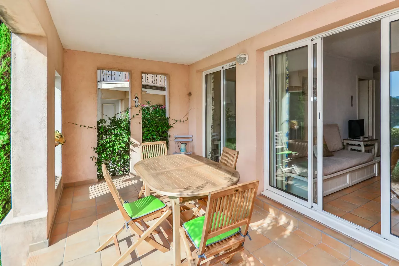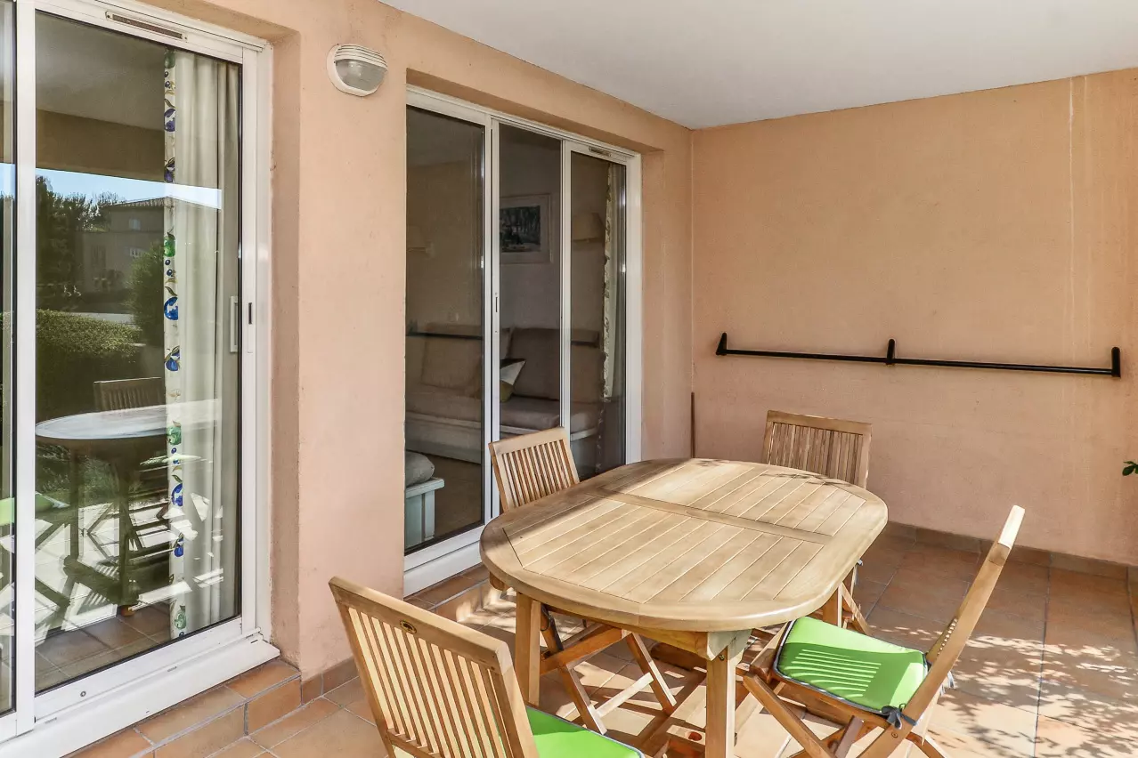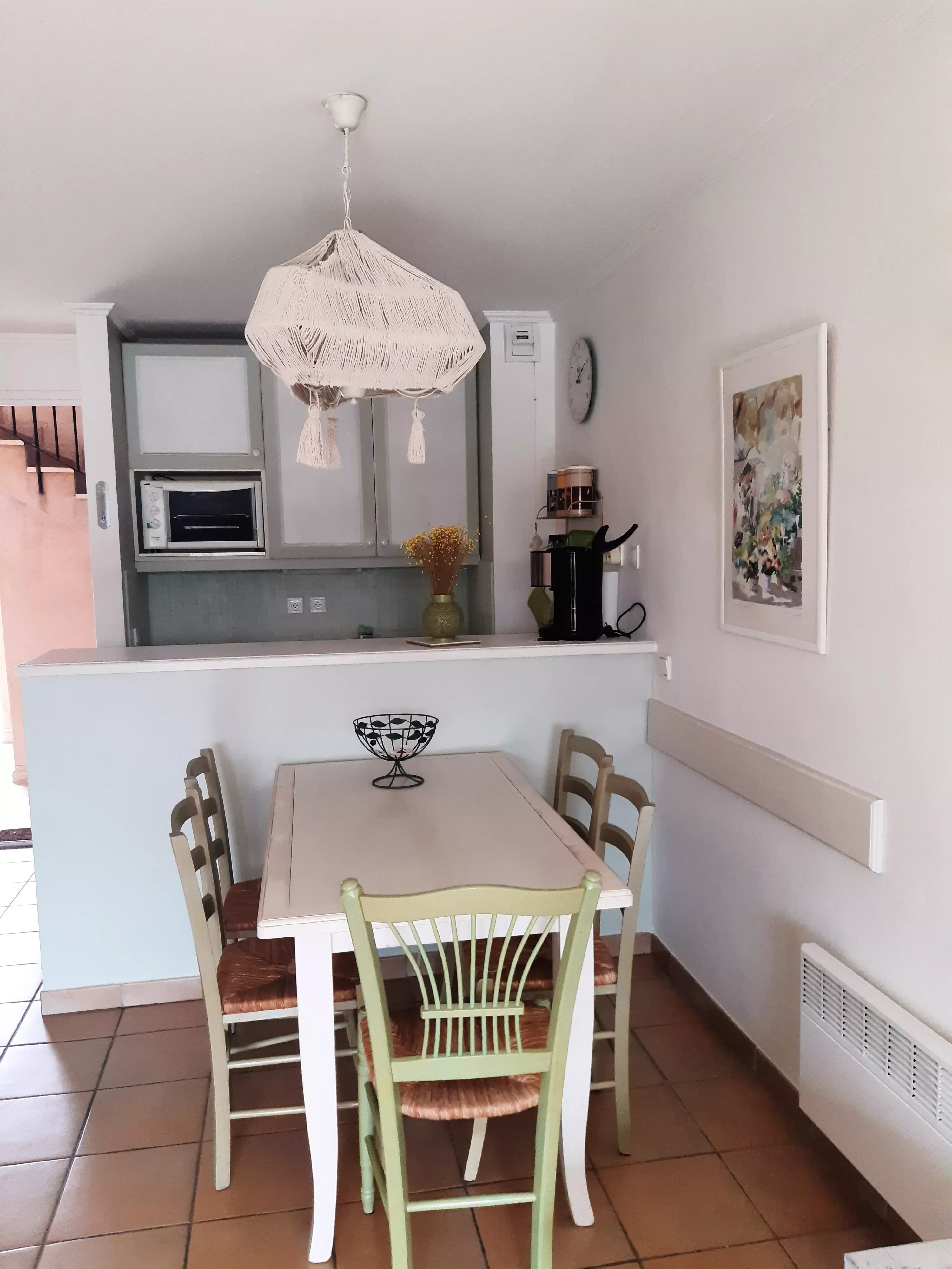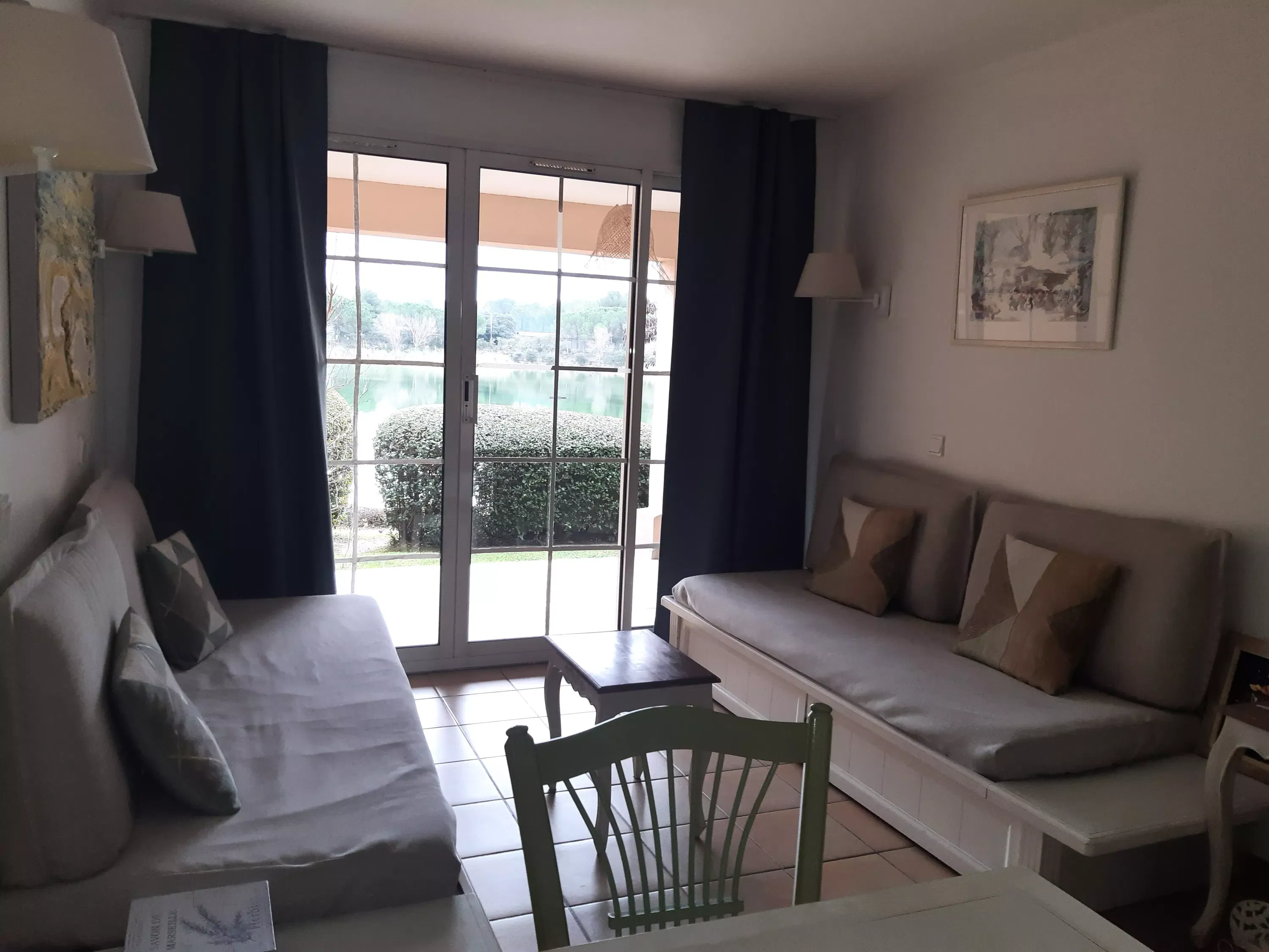 Living room composition: 2 sofa beds (3 beds including 1 bed recommended for children). Dining area: 1 table with 5 chairs.