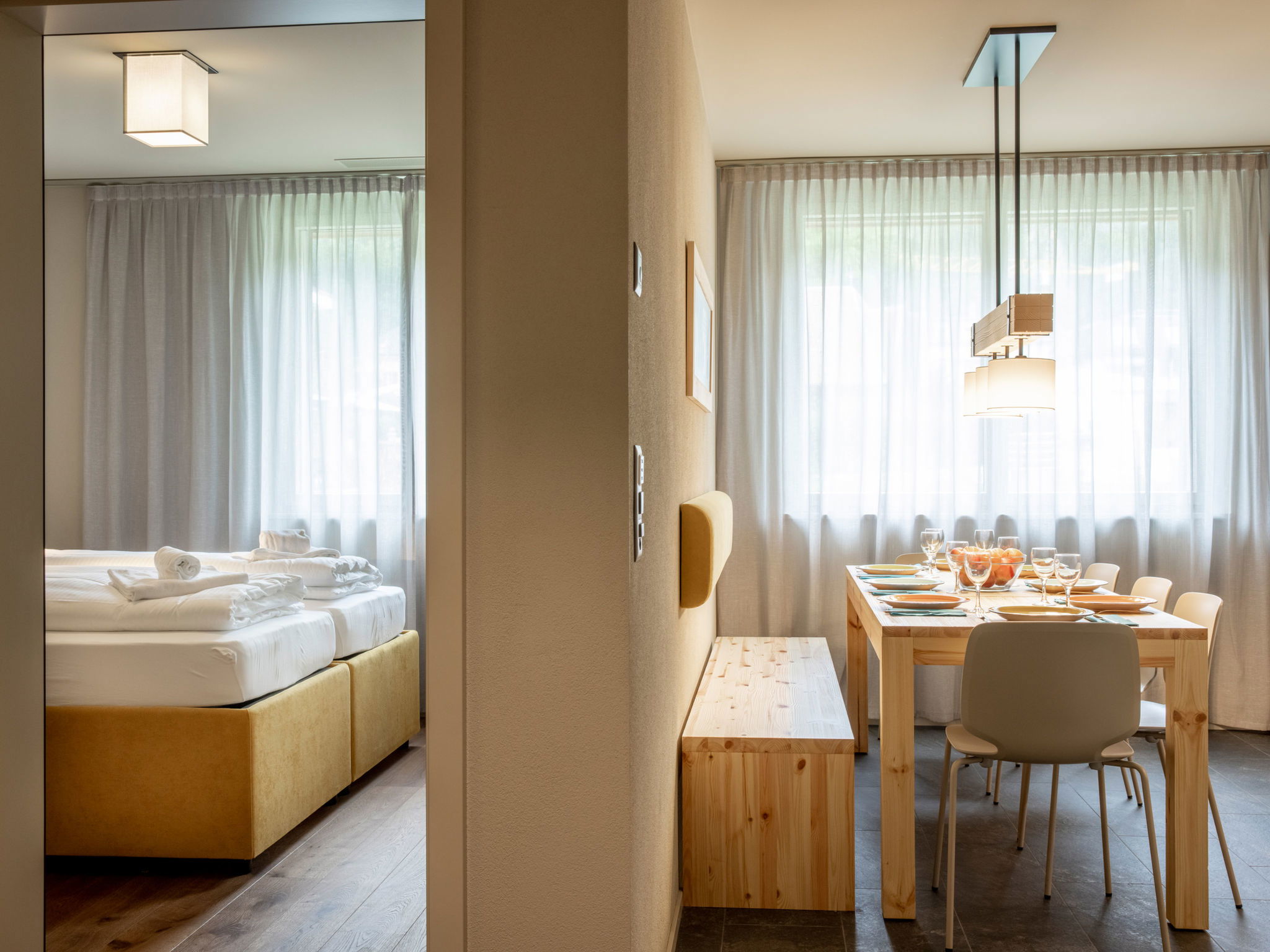 Child friendly, modern, very comfortable resort "SWISSPEAK Resorts Meiringen", 600 m a.s.l., 4 storeys, built in 2019. 6 houses in the resort. 79 apartments in the residence. In the centre of Meiringen, 12 km from the lake. For shared use: park with plants, meadow. Children's playground. In the complex: reception, lounge, WiFi, sauna, relaxation room, playroom, lift, storage room for bicycles, storage room for skis, central heating system, washing machine (extra), tumble dryer (for shared use, extra). Linen change (suppl. charge extra). Motor access to the house. Parking (limited number of spaces, extra), communal covered parking (extra) at the house, public parking 600 m extra. Dimension: height 210 cm. E-charging station. Supermarket 400 m, restaurant, bar 50 m, bakery, café 200 m, bus stop "Meiringen, Bahnhof" 200 m, railway station "Meiringen" 200 m, outdoor swimming pool 800 m, indoor swimming pool 400 m, bathing lake "Hasliberg" 14 km. Golf course (18 hole) 33 km, tennis, indoor tennis centre 800 m, riding stable 10 km, walking paths from the house 50 m, cable car 1 km, ski bus stop 100 m, cross country ski track 14 km, children's playground 100 m. Nearby attractions: Sherlock Holmes Museum 50 m, Reichenbach Falls 1.3 km, Aareschlucht 1.6 km, Freilichtmuseum Ballenberg 9 km, Brienzer Rothorn 13 km, Interlaken 28 km. Well-known ski regions can easily be reached: Meiringen-Hasliberg 1 km, Schilthorn 44 km, Jungfrau Region 47 km. Well-known lakes can easily be reached: Brienzersee 12 km, Gelmersee 22 km, Thunersee 33 km. Hiking paths: Hasliberg 1 km, Rosenlaui 12 km. Please note: suitable for families. Groups of teenagers on request only. Railway line 20 m from the property. Airfield 6 km from the property. The photo is just an example. The holiday resort was opened in December 2019. It offers a limited amount of underground parking.