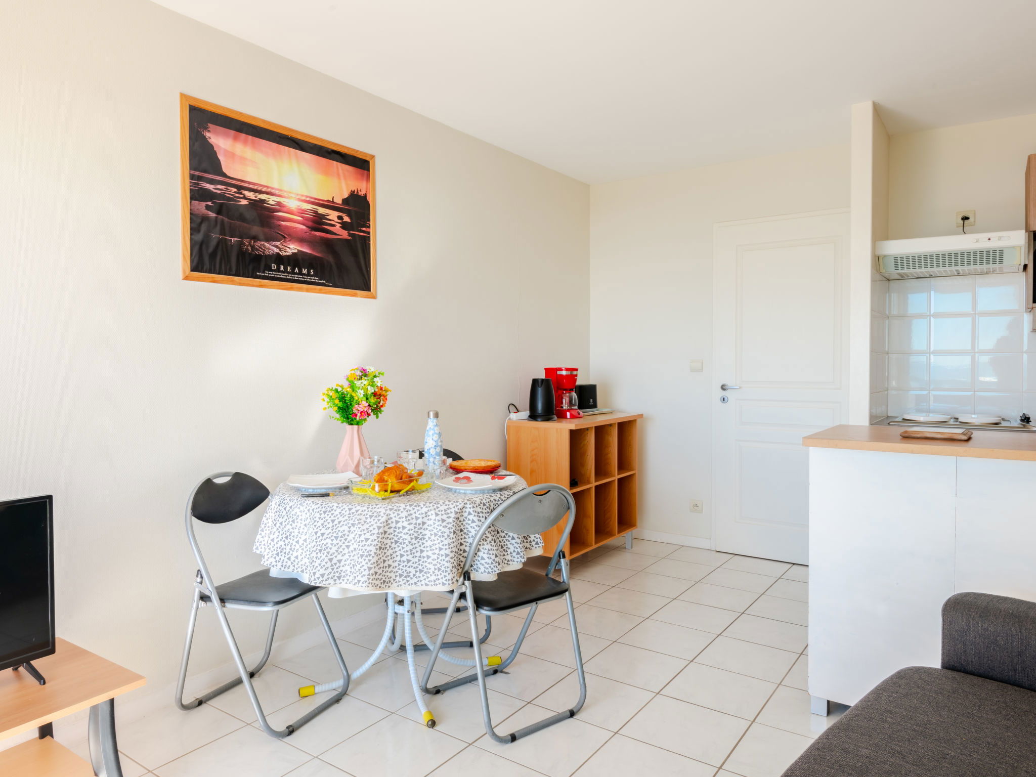 2-room apartment 38 m2 on 2nd floor. Practical furnishings: living/dining room with 1 double sofabed and TV (flat screen), radio, CD-player and DVD. Exit to the balcony. 1 room with 1 french bed (1 x 140 cm, length 190 cm). Kitchenette (4 hot plates, mini-oven, dishwasher, microwave). Shower, sep. WC. Electric heating. Balcony. Balcony furniture. View of the sea. Facilities: washing machine. Internet (WiFi, extra). Parking space n 18. Please note: maximum 1 pet/ dog allowed. TV only FR. Smoke alarm.